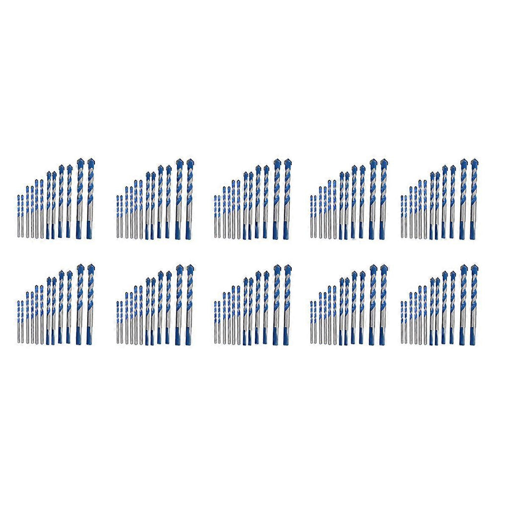 High-quality multi-function drill kit made of tungsten carbide, not rust, prevent the drill bit from cracking, has a longer service life than the average steel drill bit, and is . Excellent drill bit makes drilling easier, less labor-intensive, and works at minimal pressure. The process design of the spiral drain groove can chip removal, effectively prevent the retention of accumulated chips and improve work efficiency. The spear tip is designed with a sturdy hard alloy tip that easily penetrates a variety of materials. The custom triangular tip prevents slipping during punching and is easy to install. Normal impact drills, electric drills and drill bits can be installed and used. Assorted Size for purposes, to meet the of your work. The masonry drill bit set easily penetrates a variety of materials such as tiles, glass, hard plastics, cement concrete, brick walls, wood, and reduces cracking. Materials with higher hardness are better for use with water. colour:blue Material:alloy Package Contents: 20 x 3mm Drill Bits 20 x 4mm Drill Bits 20 x 5mm Drill Bits 20 x 6mm Drill Bits 10 x 7mm Drill Bits 10 x 8mm Drill Bits 10 x 10mm Drill Bits 10 x 12mm Drill Bits Only the above package content, other products are not included. Note: Light reflection and different displays may cause the color of the item in the picture a little different from the real thing. The measurement allowed error is +/- 1-3cm.