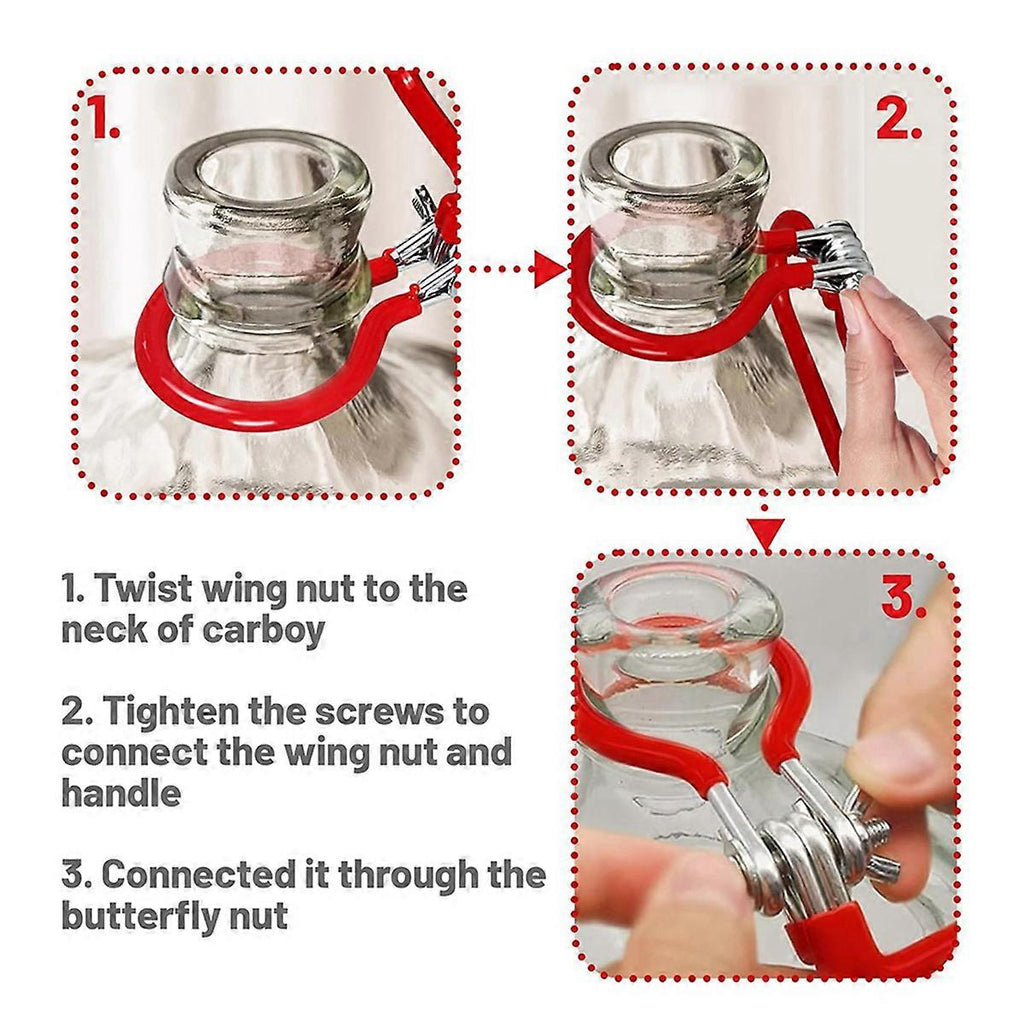 The practical butterfly nut design can save the workload when installing the belt or looking for the trolley, so that you can easily lift the bottle cap with one hand. Made of high quality manganese Steel and coated with PVC coating. It has good wear resistance and anti rust performance. It can prevent glass scratches. At the same time, the smooth makes you feel comfortable. The butterfly nut can be adjusted according to the neck width of the glass bottle mouth, and then tightened again. You can use these handles to hold the household brewing glass , brewing glass , smooth neck fermentor, etc. Colour:Red Material:Manganese steel + PVC Package Contents: 20 * Accessory part Only the above package content, other products are not included. Note: Light reflection and different displays may cause the color of the item in the picture a little different from the real thing. The measurement allowed error is +/- 1-3cm.