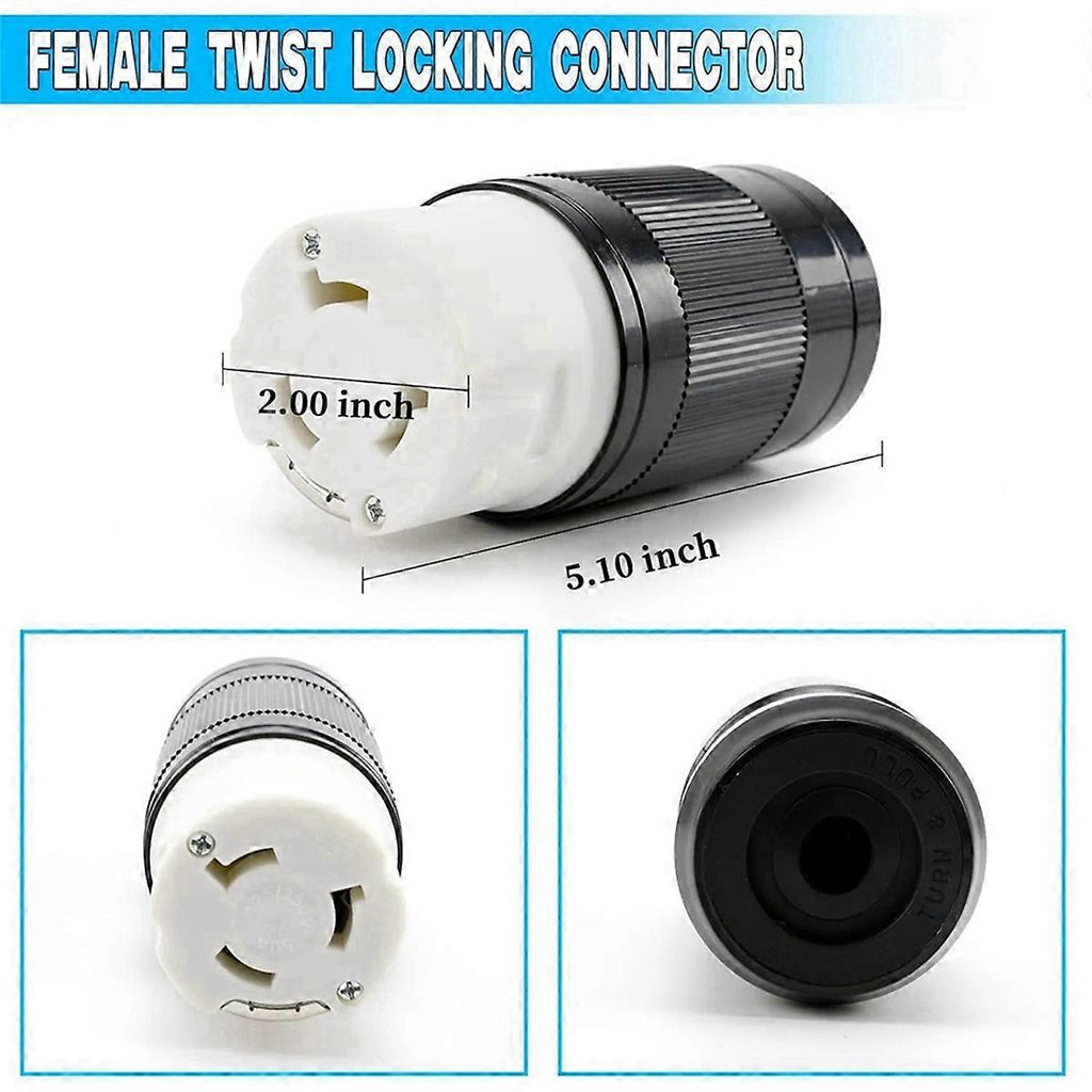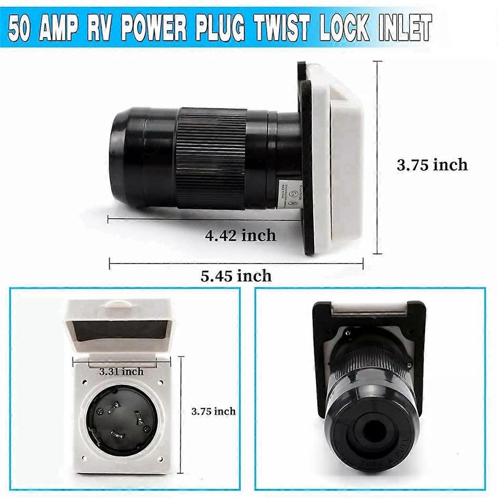 Description: Quanity: 2 pcs inlet with female locking connector with boot Voltage: 125V AC / 250V AC, Amps: 30 Amp Hole Saw: 2-1/2 inch 30amp inlet requires the use of 6awg wire. Material: ABS Color as shown RV plug constructed from - plastic and stainless steel materials. Cover constructed with a bright yellow rubber body and Black heavy-duty plastic ring for extra with no leaks. 30A 125V RV Power Inlet Kit Description: and high quality. Use with 30A 125V. Package Contents: 2 Inlet 2 x Female Twist Locking Connector 2 x Weather-proof Boot with Locking Ring Only the above package content, other products are not included. Note: Light reflection and different displays may cause the color of the item in the picture a little different from the real thing. The measurement allowed error is +/- 1-3cm.