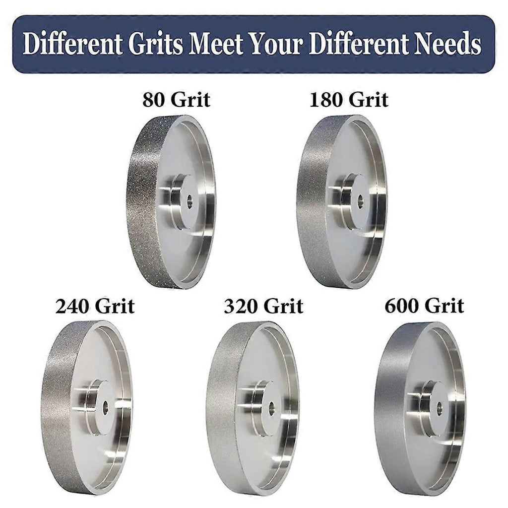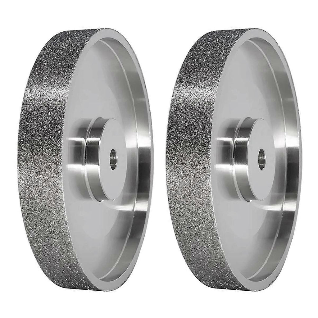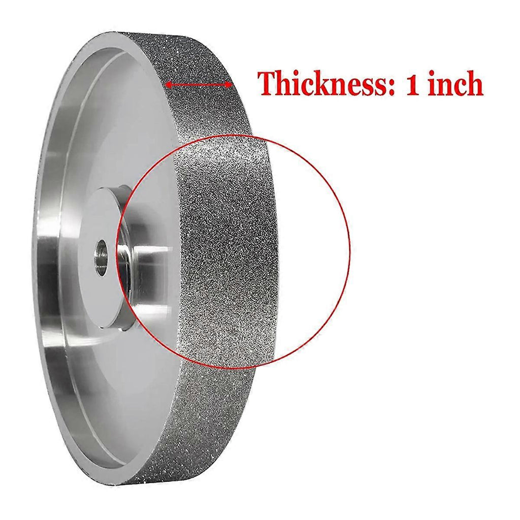[Function] is used for grinding high-speed steel woodworking tools. [Application] This grinding wheel is suitable for most bench grinders. Ideas for object sharpening and contour grinding. [High Quality Material]Our diamond grinding wheel is coated with high density diamond. High quality diamonds and steel base provide a long service life. Don't worry about deformation. [High Efficiency Tools]High quality and diamond makes our grinding work easier and more efficient. A good choice for CBN grinding wheels. [Size]Diameter: 6Inch, Shaft hole: 1/2Inch, Thickness: 1Inch Grain size: 80# color: Silver Material: diamond Package Contents: 2 x grinding wheel Only the above package content, other products are not included. Note: Light reflection and different displays may cause the color of the item in the picture a little different from the real thing. The measurement allowed error is +/- 1-3cm.