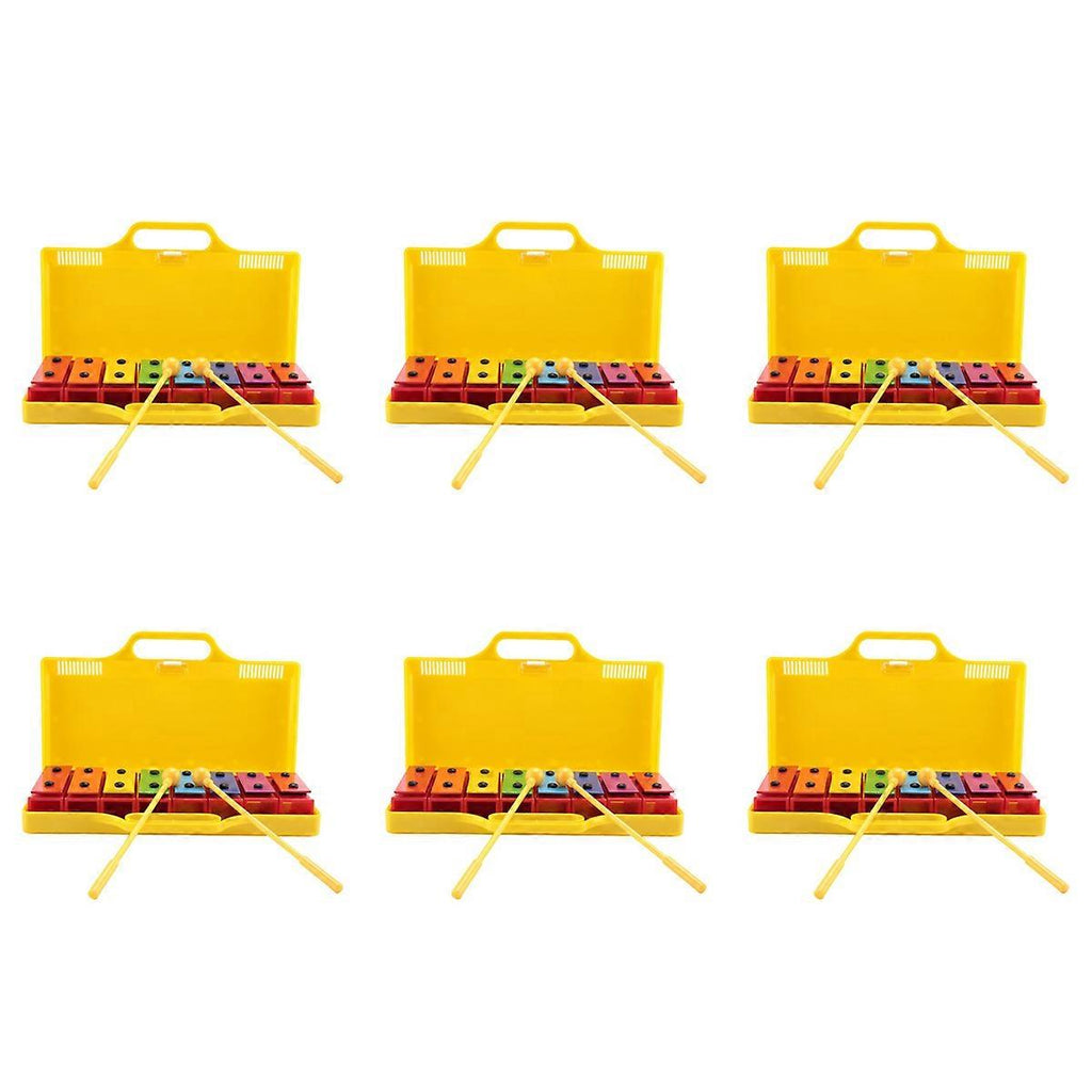 1.Children-friendly Design: The rainbow-color metal keys can teach the baby to recognize different colors. The easy-hold mallets allow kids use the glockenspiel simply and improve their hand control ability. 2.Enlightenment Musical Instrument: The 8 note glockenspiel can cultivate players ' music cells, exercise coordination for hands to eyes, and promote development of left and right brain. 3.Parent-child Interaction: Great musical instrument for home, music studio or pre-school musical classes. It suit for children and parents, which can increase parent-child interaction and nurture parent-child relationships during play. 4.Premium Material: This tubular resonator is made of plastic and metal, and the GABC scale open on both sides. 5.Easy to carry: The xylophone is equipped with a yellow piano case, and the bottom of the piano case has a groove to fix the movable sound brick. There is a handle on the piano case, which is convenient for children to carry. Specification: Name: 8-tone brick knock on piano Weight about 0.75kg Description: Music style: C/D/E/F/G/A/B, with two hammers. colour:colored material:metal + plastic size:26 x 16 x 5cm Package Contents: 6 set x 8-tone brick 6 x Piano box 6 pair x hammers Only the above package content, other products are not included. Note: Light reflection and different displays may cause the color of the item in the picture a little different from the real thing. The measurement allowed error is +/- 1-3cm.