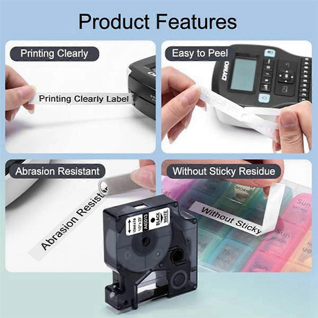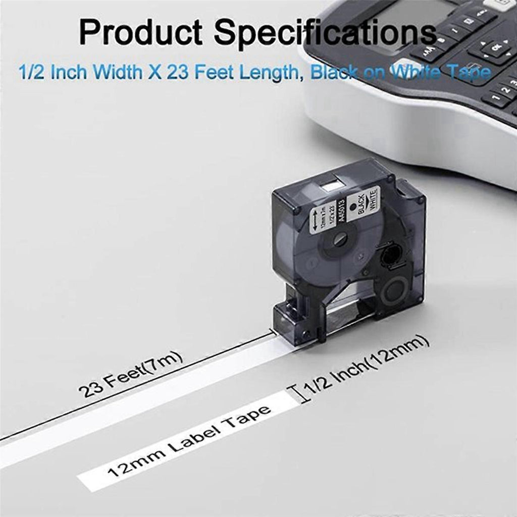 Compatible printer model: For Label Manager 100 / 120P / 150 / 160 / 200 / 210D / 220P / 260P / 280. For Label Manager 300 / 350 / 350D / 360D / 400 / 420P / 450 / 450D / 500TS Contact screen. For Label Manager PC / PC II / PnP / Wireless PnP ( Label Manager Wireless Plug N Play). For Label Point 100 /150 / 200 / 250 / 300 / 350. For Label Writer 400 Duo / 450 DUO / -PL100 / -PL150 / -PL200 / -PL300. Type: Printer Ribbon Applicable Equipment: Label Printer Product name: Compatible 45013 Label Tape Size: 12mm x 7m(1/2 x 23 inch) Key words 1:DIY ribbon Key words 2:Embossed tape Key words 3:for Label Manager 160 210 450 280 Key words 4:Label machine self-adhesive tape Key words 5:Embossed sticker Colour: black Material: plastic Package Contents: 40 x Embossed tape Only the above package content, other products are not included. Note: Light reflection and different displays may cause the color of the item in the picture a little different from the real thing. The measurement allowed error is +/- 1-3cm.