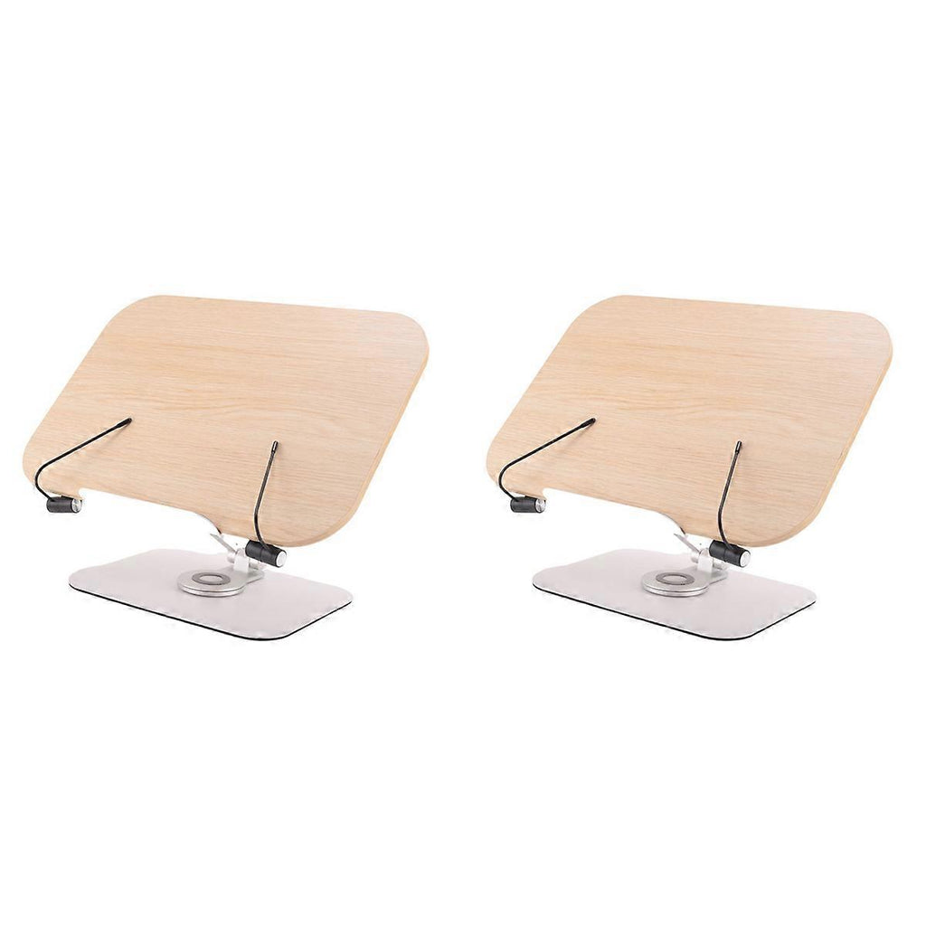 The boards are made of natural wood and provide a more pleasant reading. The pillars and base are made of high-quality aluminum alloy. Anodized coating provides long-lasting rust and protection. With a 360?? swivel base, it is the tool for sharing ideas or presenting cases. Multi-angle and height adjustable bookshelf elevates books to fit your eye level, promotes correct posture for better spine health, eliminates strain on eyes, neck, back and shoulders Versatile cookbook holder for books, tablets, magazines, drawings, sheet music, tablature, of different sizes and styles. Great for students, teachers, and long-time . Material: Wood+aluminum alloy colour: Wood+silver Package Contents: 2 x Adjustable Book Holder Only the above package content, other products are not included. Note: Light reflection and different displays may cause the color of the item in the picture a little different from the real thing. The measurement allowed error is +/- 1-3cm.