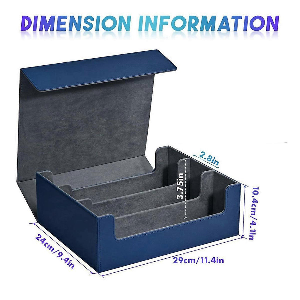 It's a to send your friends who have a hobby of collecting cards, it can provide a home to store your cards. Keep your collection cards clean and organized: Our card deck case are made of high quality PU leather material, well made and . Effectively protect your card from bending, fading and scratching. Card boxes for easy organization: You can put the same type of cards in a same box, the accessible closure allow you easily take out and put back your precious collection cards. Wide Compatibility, fit for most of trading card game cards, for storing the majority of Collectible Cards. Colour: Blue Material: PU Size: about 290 x 245 x 105mm Package Contents: 3 x card box Only the above package content, other products are not included. Note: Light reflection and different displays may cause the color of the item in the picture a little different from the real thing. The measurement allowed error is +/- 1-3cm.