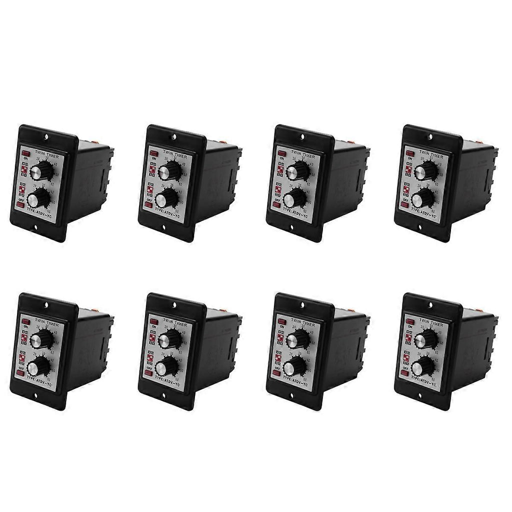 1. This is twin timer relay with timing power-on and power-off function. 2. Adjustable 6S-60M delay time by knob. 3. High quality plastic case, waterproof and dustproof. 4. High accuracy, low power consumption, long lifespan. 5. Widely applied to automated control circuit such as remote control, communication, automatic control, mechatronics and so on. power supply: AC110/220V Model:ATDV- Time range: 0-10s Rated current: 5A Power consumption: 2VA Contact load: Medium power Contact switching current: 5A Contact switching voltage: 1V Coil power supply: 24V Ambient temperature: -10~50Celsius Ambient humidity: 45-85%RH Colour:As shown Material:ABS Size: 9.5 x 8.6 x 5.7cm Package Contents: 8 x Twin Timer Relay Only the above package content, other products are not included. Note: Light reflection and different displays may cause the color of the item in the picture a little different from the real thing. The measurement allowed error is +/- 1-3cm.