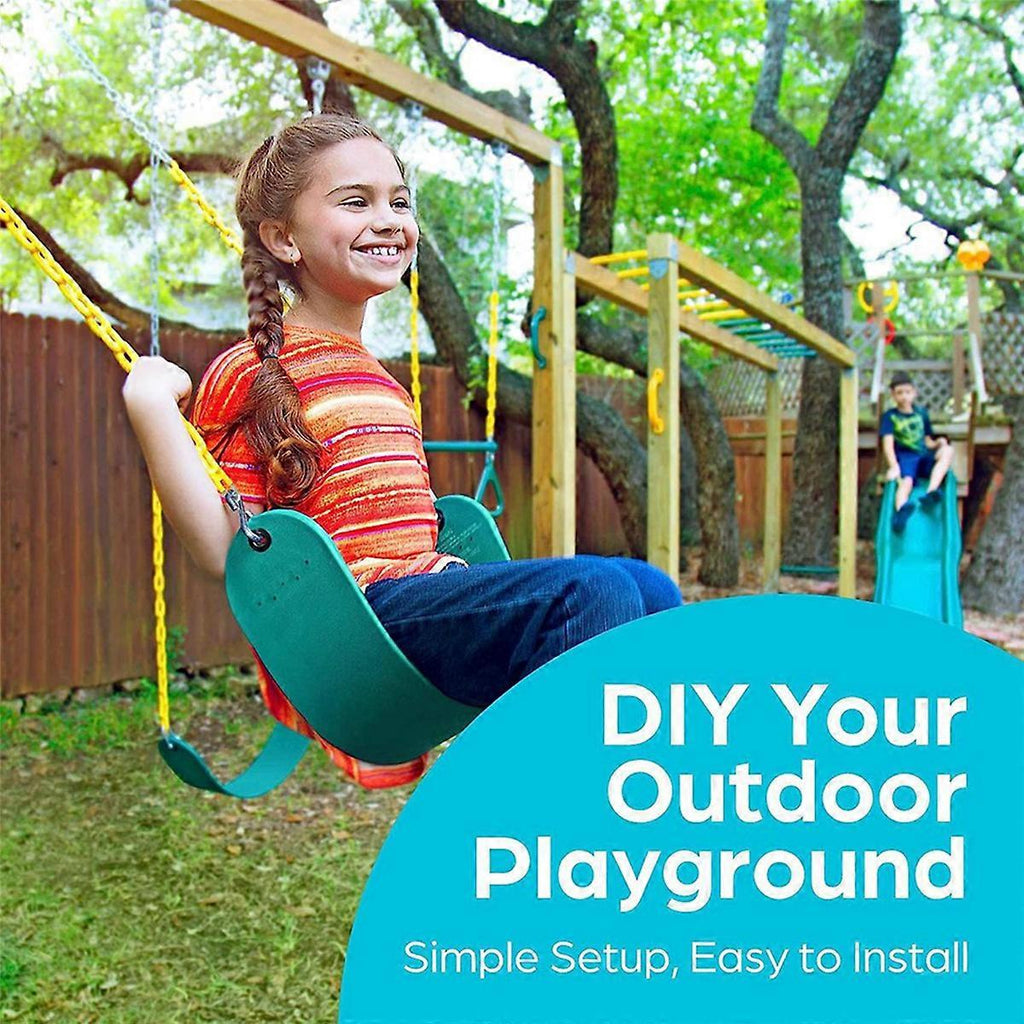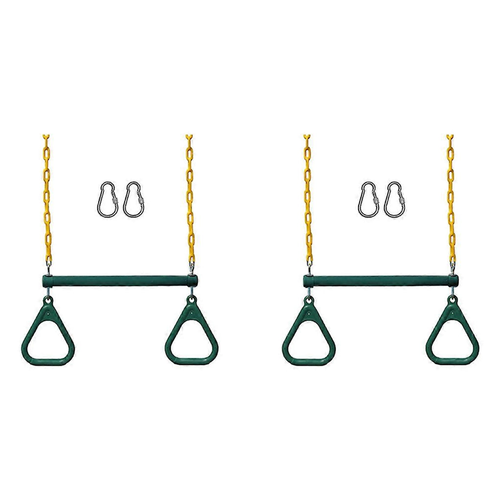 Upgrade your playground equipment and make active outdoor play possible every day Encourages imaginative play and socializing Includes illustrated plans and mounting hardware for easy installation Easy to set up, our hanging bar comes fully assembled with rings, 48inch chains & 4 steel carabiners Enhances imaginative play. Colour: green+yellow Material: plastic+metal Package Contents: 2 x hanging bar 4 x hanging rings 4 x chains 4 x steel carabiners Only the above package content, other products are not included. Note: Light reflection and different displays may cause the color of the item in the picture a little different from the real thing. The measurement allowed error is +/- 1-3cm.
