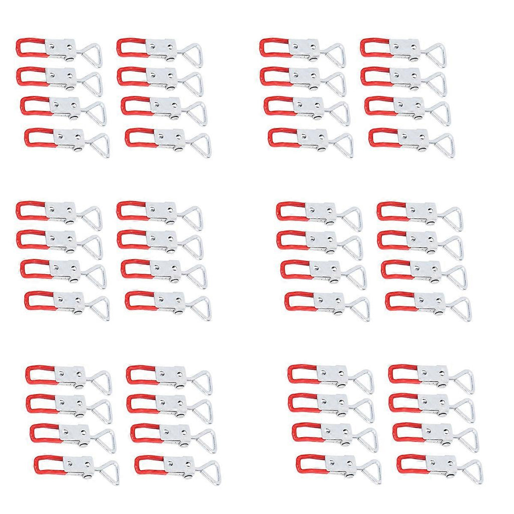 1. and high quality. Metal latch handle, lever fastener. 2.Widely used on machine operation, welding, jigging, repairing, electronic equipment assembly, etc field. 3.Plastic cover handle for easy, safe and comfortable operation. 4.Maximum overall length is 4 inch with adjustable pull bar.Available metric # 4 flat screws. size: 10.6x2.7x1cm Material: ABS + metal colour: Red + Silver Package Contents: 60 x Toggle Latch Only the above package content, other products are not included. Note: Light reflection and different displays may cause the color of the item in the picture a little different from the real thing. The measurement allowed error is +/- 1-3cm.