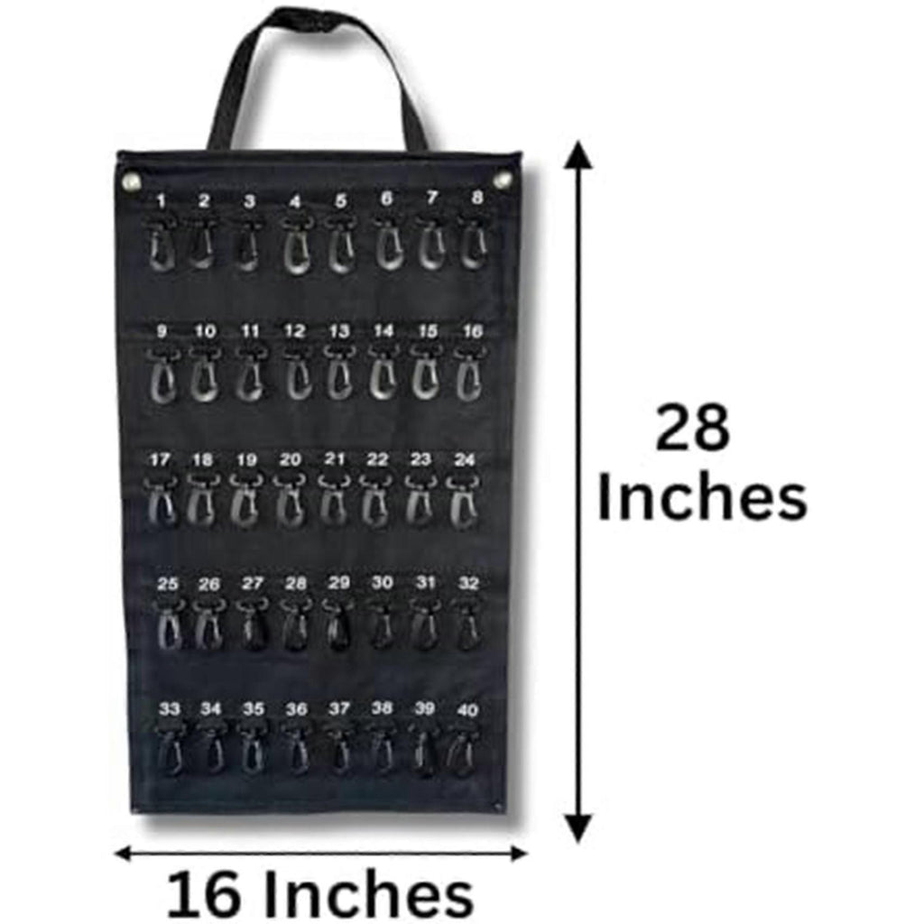Space-Saving Design: Features a roll-up exterior design for easy and compact storage, making this key storage box the solution for secure storage and transportation. Its width is 16 inches and height is 28 inches, allowing for maximum storage of necessary keys. HIGH CAPACITY: This key storage box can hold up to 40 keys, providing considerable storage space and ensuring efficient organization. It's 16 inches wide and 28 inches tall, ensuring there's enough room to safely store all your important keys. MATERIAL: Made of black Oxford cloth, known for its durability, weather resistance and water resistance. This key storage box offers extended life for year-round use, making it an excellent investment for home and office owners. Enhanced Security: Equipped with a plastic safety hook that reliably protects each key from unexpected situations such as accidental loss or damage. You can rest that your keys are safely stored in this sturdy key storage box. User Convenience: Features carrying handles for easy transport and loops for easy hanging while in use. The portable construction of this key storage box ensures user-friendly operation in all situations. Versatility: Its practical design meets a variety of needs, making it for commercial, real estate, car dealership and property management requirements. Available in the versatile black color, it's sure to match any environment. Colour:Black Material:Oxford cloth Package Contents: 3 x hook bag Only the above package content, other products are not included. Note: Light reflection and different displays may cause the color of the item in the picture a little different from the real thing. The measurement allowed error is +/- 1-3cm.