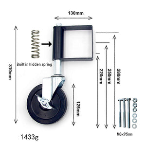 1. 5 inch Gate Caster with Adjustable Spring Bracket is designed to allow gates to open and close freely. 2. It features a 100kg load rating and a spring-loaded clamp that acts as a when the caster is rolling over...