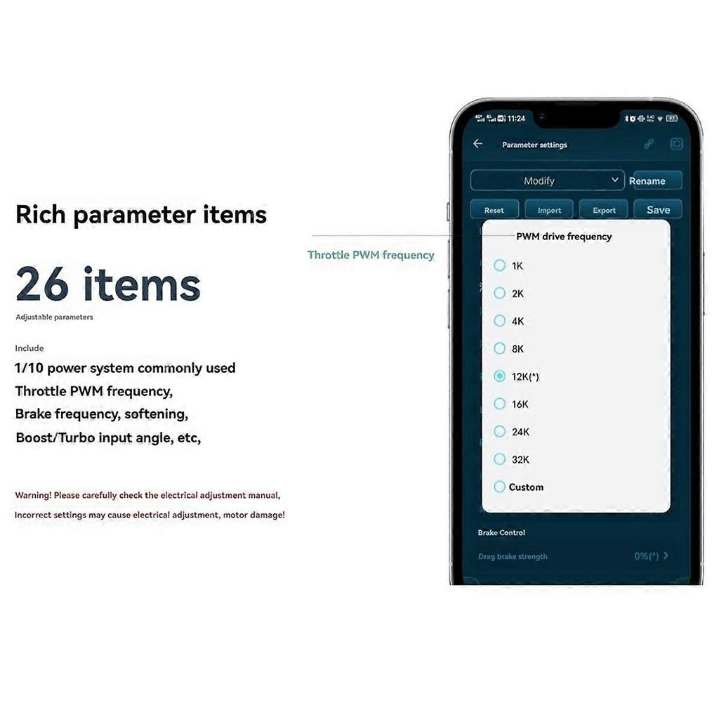 Small size, light weight, extremely small and light shape facilitates wiring, and also makes the car more stable when cornering,Built-in dual application mode, built-in Zero Timing, Modified two competition modes, ready to use Built-in switch mode BEC with a maximum output current of up to 3.5A, and the output voltage 6V/7.4V adjustable, easily meet the input power requirements of high-torque high-voltage servos After the ESC is connected to the OTA Bluetooth module, a wireless connection can be established between the mobile phone and the ESC, and the mobile phone App can be used for parameter setting, data reading, firmware upgrade and other operations, which is simple and convenient Born for 1/28 car competition, the software, hardware and structure are tailored for 1/28 car competition, and it is an ideal choice for 1/28 car competition needs Ratio: 1/28th Brush/brushless: brushless Feeling/No sensation: feeling Waterproof: No waterproof Continuous/ current: 30A/80A Number of battery festivals: 2S Lipo BEC output: 6V/7.4V 3.5A max Support motor type: 1626 size motor Applicable model: for 1/28th & 1/27thth Specification:6500KV Colour:Black Material:CNC Aluminum Package Contents: 1 x Brushless Motor 1 x ESC Only the above package content, other products are not included. Note: Light reflection and different displays may cause the color of the item in the picture a little different from the real thing. The measurement allowed error is +/- 1-3cm.