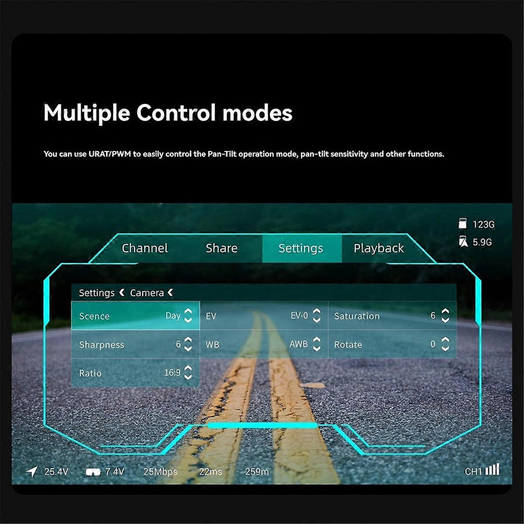 Enhanced compatibility: This gimbal is designed to work seamlessly with digital FPV systems and is suitable for . It also works with 19mm wide analog cameras, making it a versatile choice for a variety of setups Immersive FPV experience: Experience excellent control with the integrated tracker function. Multiple control methods Easily control the gimbal working mode, gimbal sensitivity and other functions through URAT/PWM Dual-axis design to meet the needs of scenarios, allowing users to quickly build their own personalized gimbal camera Strong and : This gimbal is made of materials, providing a solution without compromising strength Wide range of uses: This gimbal supports multiple stabilization modes, perfect for a variety of remote control cars and drones Camera compatibility: 19mm width FPV camera Image stabilization accuracy: 0.005 Maximum controllable rotation speed: 1500/s Controllable rotation range: Pitch: 120; Roll: 60 Control mode PWM/UART tracking control: Supported Working voltage: 7-26V Power consumption: 1.2W (static) 9.5W (stalled) The product appearance and printed words depending on the batch, but this does not affect use Colour:Black Material:Metal + Plastic Package Contents: 1 x Gimbal Only the above package content, other products are not included. Note: Light reflection and different displays may cause the color of the item in the picture a little different from the real thing. The measurement allowed error is +/- 1-3cm.