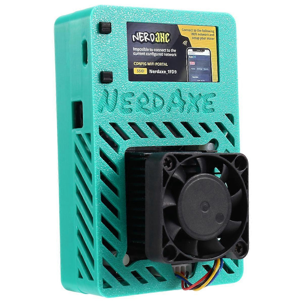 NerdAxe is a fork from bitaxe Ultra with fullcolor display graphics, a fully open-source Bitcoin ASIC miner. NerdAxe is indented to be an expansion board for these who have a NerdMiner and would like to have more powerful mining features without losing the NerdMiner essence. That's why NerdAxe is currently controlled by the common board used on Nerdminer project,This design ensures an efficient and powerful mining capabilities, achieving 500 /s with an energy efficiency of 20 J/TH. Although the current mining capabilities of Nerdaxe position it as a solo miner compatible with any solo mining pool, it's important to manage expectations regarding its performance. Mining a block independently with Nerdaxe is a challenging and unlikely. Note:Type C cable is not for powering the machine, but for updating or burning firmware. Due to different batches, there may be differences in product appearance, color, and printed text, and the fan in the product may be labeled, which not affect the use. Plug Type:AU Plug,it applies to Australia and so on. Voltage:AC230-240V Colour:Green Material:Plastic Package Contents: 1 * NerdAxe Miner 1 * Power adapter 1 * Type C cable Only the above package content, other products are not included. Note: Light reflection and different displays may cause the color of the item in the picture a little different from the real thing. The measurement allowed error is +/- 1-3cm.