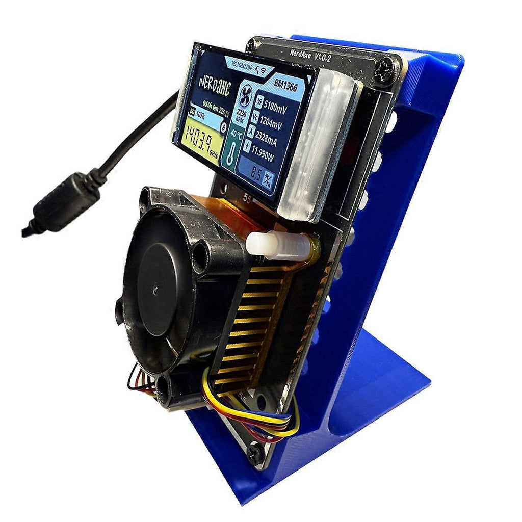 NerdAxe is a fork from bitaxe Ultra with fullcolor display graphics, a fully open-source Bitcoin ASIC miner. NerdAxe is indented to be an expansion board for these who have a NerdMiner and would like to have more powerful mining features without losing the NerdMiner essence. That's why NerdAxe is currently controlled by the common board used on Nerdminer project,This design ensures an efficient and powerful mining capabilities, achieving 500 /s with an energy efficiency of 20 J/TH Although the current mining capabilities of Nerdaxe position it as a solo miner compatible with any solo mining pool, it's important to manage expectations regarding its performance. Mining a block independently with Nerdaxe is a challenging and unlikely. Due to different batches, there may be differences in product appearance, color, and printed text, and the fan in the product may be labeled, which not affect the use. Plug Type:EU Plug,it applies to Indonesia, Germany, France, Spain, Italy and so on. Voltage:AC100-240V Colour:Blue Material:Plastic+PCB Package Contents: 1 * NerdAxe Miner 1 * Power adapter Only the above package content, other products are not included. Note: Light reflection and different displays may cause the color of the item in the picture a little different from the real thing. The measurement allowed error is +/- 1-3cm.