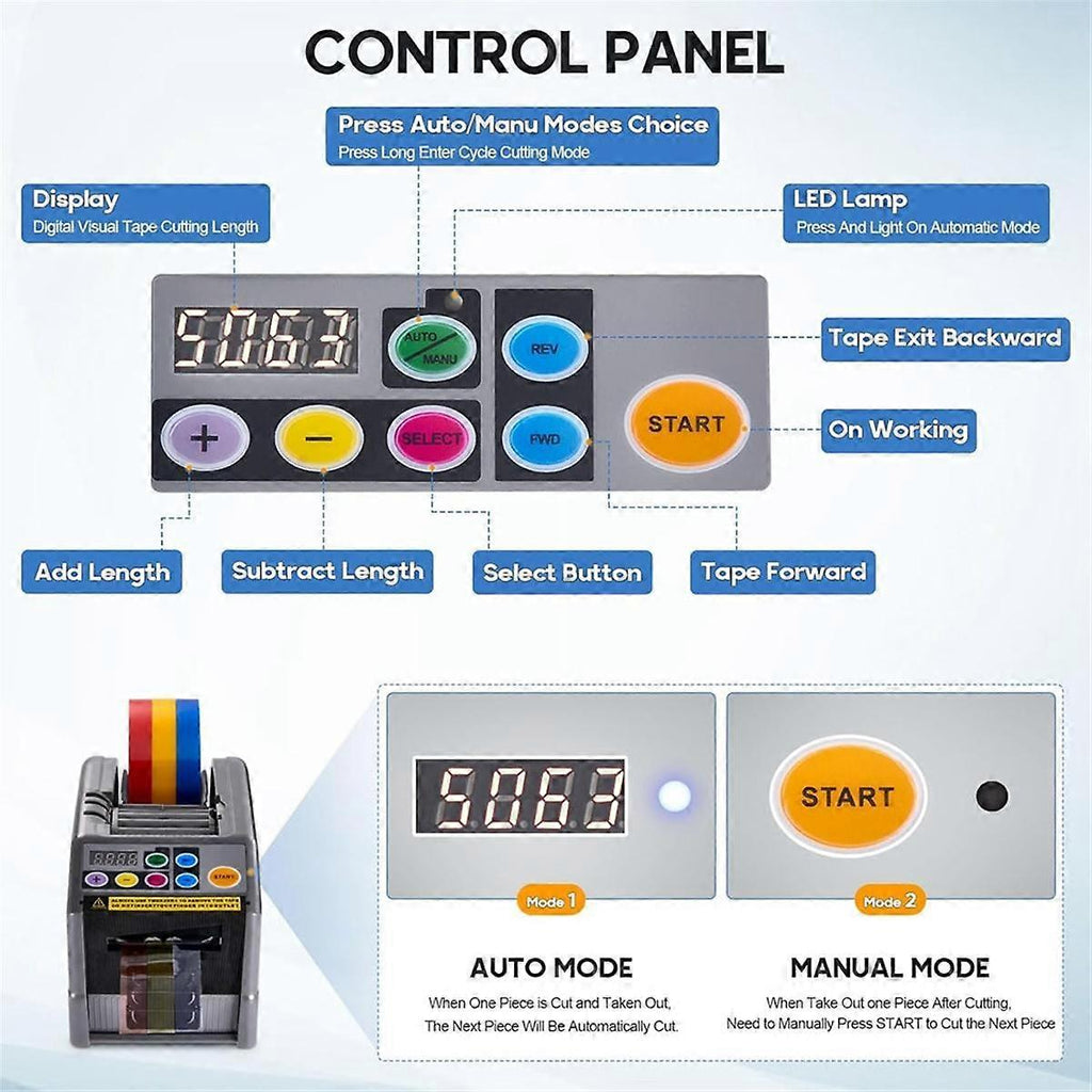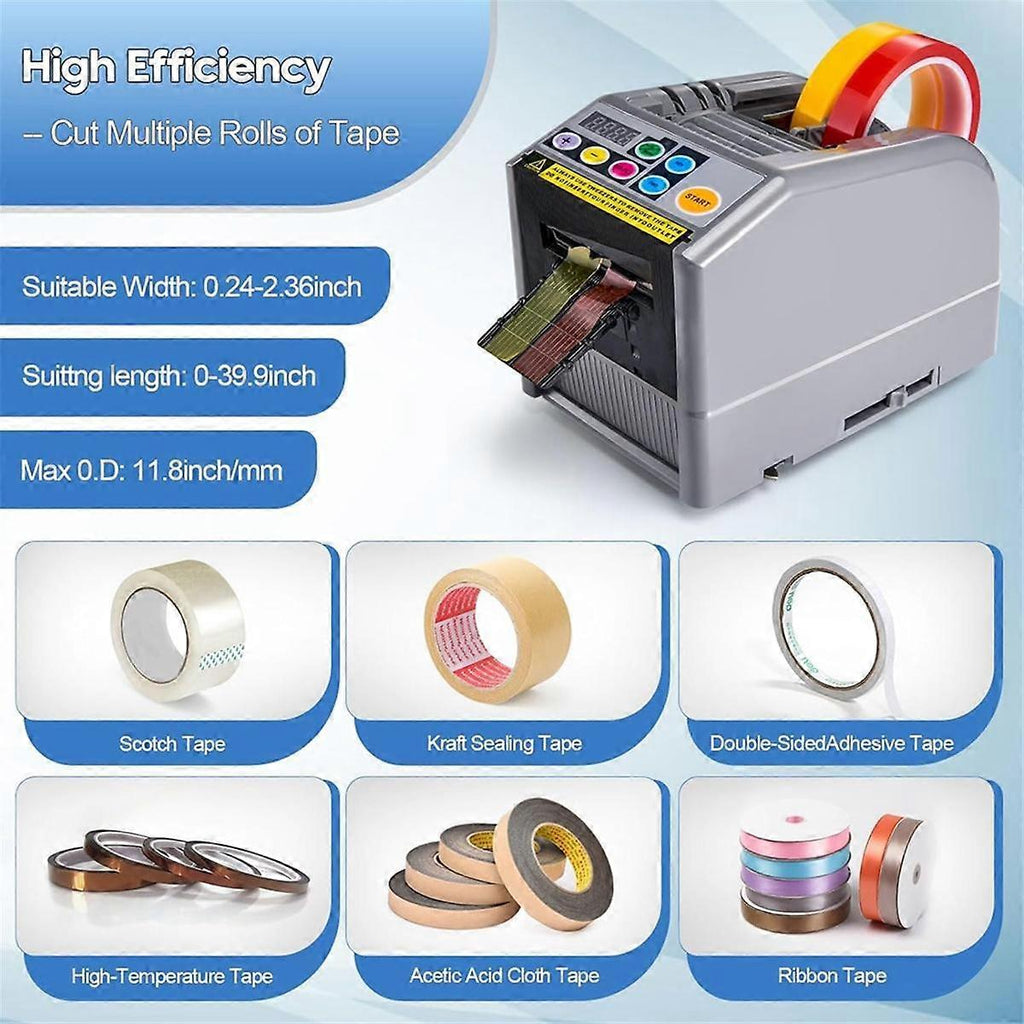 cutting machine is a powerful multifunctional machine that can handle tapes such as transparent, leather paper, fiber, warning, double -sided, and decorative ribbon.With its LCON mode cut ribbons, the partition partition can cut two rolls of tape at the same time, which is very suitable for packaging work.Use the electric tape allocation to simplify your tape cutting process! In addition to the automatic flashing LED light and manual mode, the LCON mode is also used (long press selection, the preset number is 1-999, and the cutting is completed at one time).Make tape cutting machines a must -have tool for enterprises and individuals. The automatic tape distributor cutting machine is suitable for 6-60 mm /0.24 inch -2.36 inch width and 5-999 mm /0.2 inch -39.33 inch length.Upgraded silicone wheels can reduce viscous residues and cardboard.As long as the residual glue is regularly cleaned, there is no need to replace the blade set to facilitate cutting efficiency and performance. tape distributor has an LED screen, which can be measured accurately. Press the automatic/manual button, the LED will After the first piece is removed, it will cut the second piece.In manual mode, press the start button at a time.This wire cutting machine raises your job to a , saving time and energy. automatic tape distributor cutting machine is very suitable for manual decoration and packaging items, such as party/holiday hand -decoration, station warehouse, enterprise, retail store, company or family packaging.The detailed process will be displayed in the video. Plug Type :EU Plug,it applies to Indonesia, Germany, France, Spain, Italy and so on. Voltage: AC220V Colour:As Shown Material:Plastic Package Contents: 1 set x ribbon cutting machine Only the above package content, other products are not included. Note: Light reflection and different displays may cause the color of the item in the picture a little different from the real thing. The measurement allowed error is +/- 1-3cm.