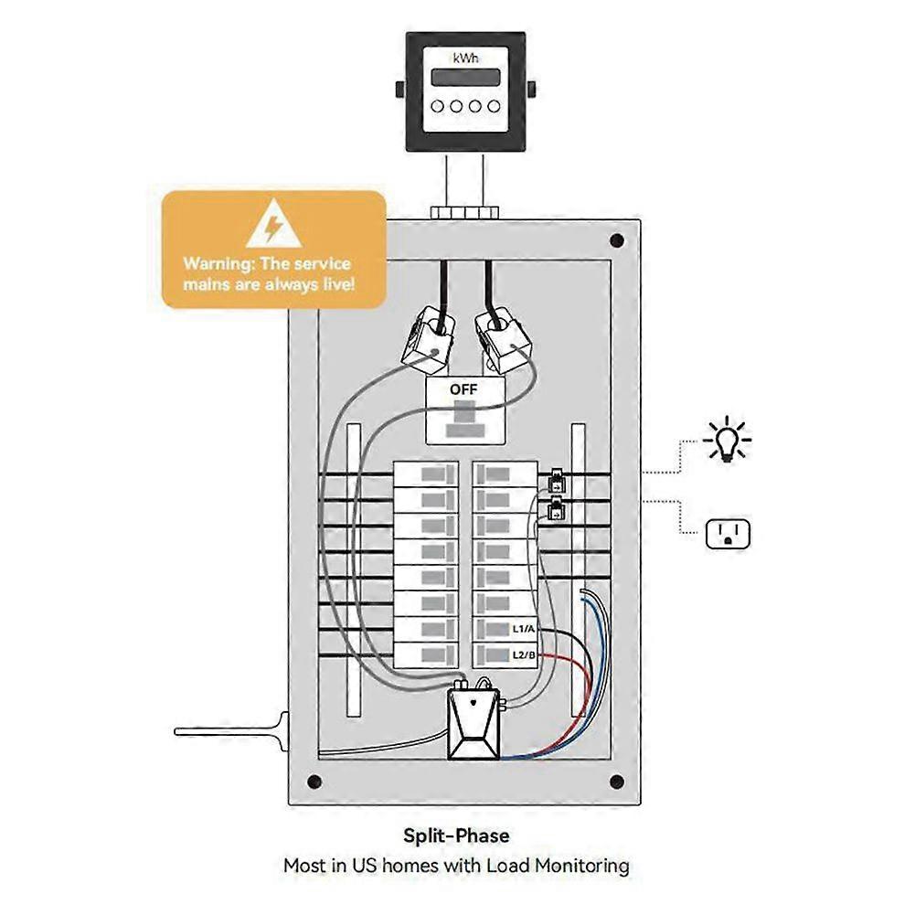 Tuya compliant. Support automation with other Tuya device Single, Split-Phase120/240VAC,3-Phase/4-wire 480Y/277VAC electricity system compatible Remotely monitor whole and up to 2 individual circuits with 50A Sub CT, like Solar, lighting, receptacles Bi-Directional measurement;Real-time Voltage, Current, PowerFactor, ActivePower, Frequency measurement Historical data of Energy Consumed and Energy Production Specifications: WIFI-SP360-300A Colour:White Material:plastic Product Parameters Operating Voltage:90-277 Vac 50/60 Hz Calibrated Metering Accuracy:2% Reporting Cycle:Every 15 seconds Operating Temperature:-20-+55 Operating Humidity: Less than 90% non-condensing Wi-Fi:802.11 b/g @2.4GHZ RF Characteristics:Operating frequency:2.4GHz/External magnetic antenna Supported Systems:Single-Phase 240VAC line-neutral/Split-Phase 120/240VAC/ Three-Phase up to 480Y/277VAC(No //Y/Star Connection Important Safety Information for Installation! The power meter must be installed and serviced by qualified electricians. Do not touch the terminals of the device during testing. Turn off power before connecting or disconnecting auxiliary equipment. Use appropriate Double check that the power supply is off with the rated voltage sensing device. Package Contents: 1 set * Real-time power monitor Only the above package content, other products are not included. Note: Light reflection and different displays may cause the color of the item in the picture a little different from the real thing. The measurement allowed error is +/- 1-3cm.