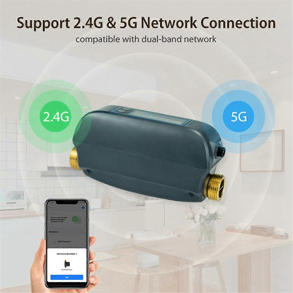 SMART WATER VALVE - Realtime screen display / Detect water flow rate and Water meter;Shut on/off. Support 2.4G & 5G Network Connection, compatible with dual-band network Realtime Screen Display of Water Flow Data. Lead-free Copper Water Pipe,5V-2A AC/DC Power Adapter Power Supply. APP Remote Control Valve Shut On/off. Ultrasonic Flow Rate Detect - Using W-shaped ultrasonic water flow measurement technology, accurate and reliable. Real-time Water Flow Rate and Total Water - Check your water status at any time and save water. Monitoring Water Data - Record water status in App how to save water and energy conservation. Automation Scene, Works with Leak Sensor - When leak sensor detects leakage, then automation shut off the water valve. Smart , Working All Devices Protect Your Family, Enjoy Your Smart Life. Smart Control EZ-Pairing, Easy 3 steps and paired with your phone. Plug Type:US Plug, it applies to Canada, India, Mexico, Thailand, Taiwan, the , the Philippines and so on. Voltage:AC110V Colour:Gray-Black Material:Plastic Package Contents: 1 * WiFi Water Valve 1 * Power Adapter Only the above package content, other products are not included. Note: Light reflection and different displays may cause the color of the item in the picture a little different from the real thing. The measurement allowed error is +/- 1-3cm.