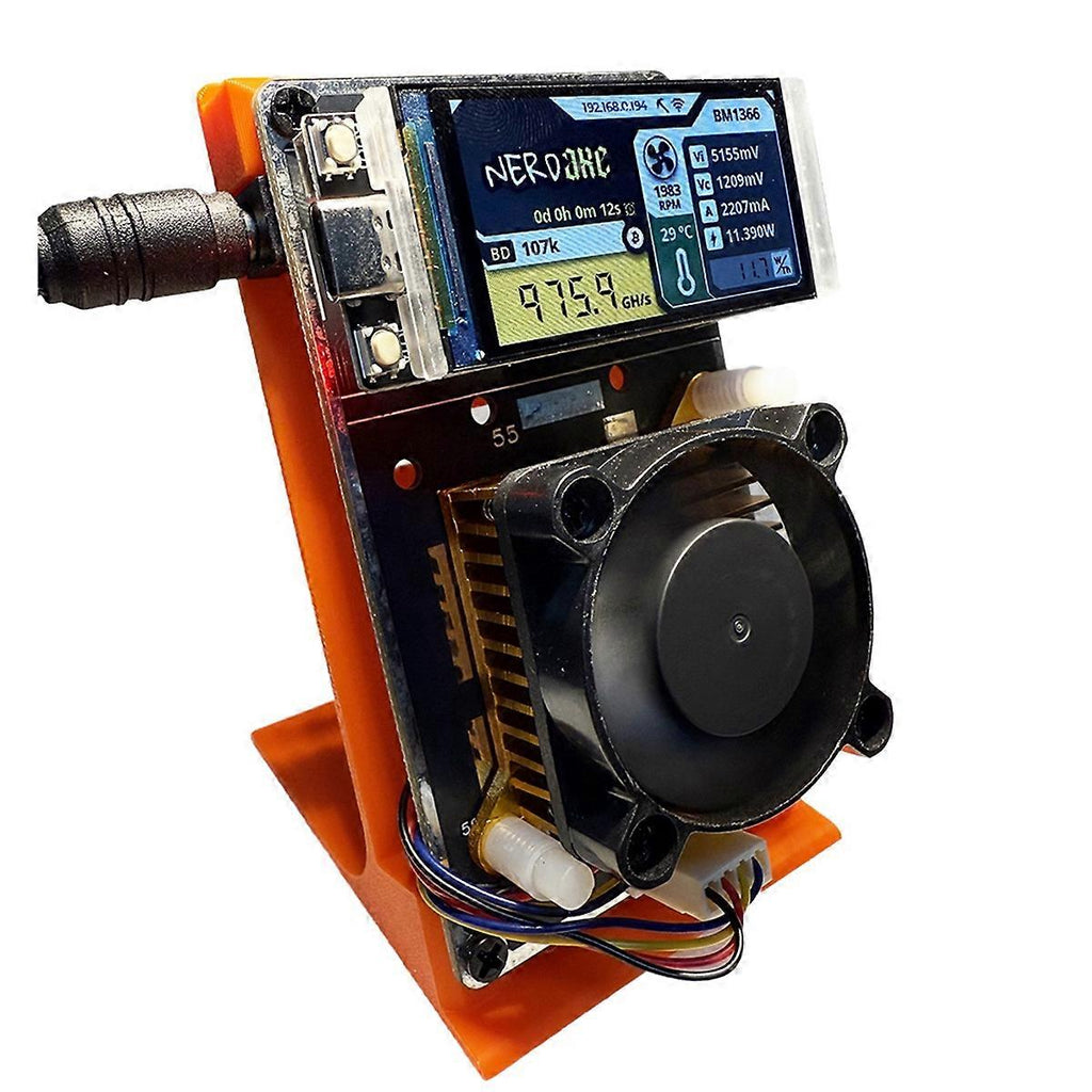 NerdAxe is a fork from bitaxe Ultra with fullcolor display graphics, a fully open-source Bitcoin ASIC miner. NerdAxe is indented to be an expansion board for these who have a NerdMiner and would like to have more powerful mining features without losing the NerdMiner essence. That's why NerdAxe is currently controlled by the common board used on Nerdminer project,This design ensures an efficient and powerful mining capabilities, achieving 500 /s with an energy efficiency of 20 J/TH Although the current mining capabilities of Nerdaxe position it as a solo miner compatible with any solo mining pool, it's important to manage expectations regarding its performance. Mining a block independently with Nerdaxe is a challenging and unlikely. Due to different batches, there may be differences in product appearance, color, and printed text, and the fan in the product may be labeled, which not affect the use. Plug Type:UK plug,it applies to Malaysia, the United Kingdom and so on. Voltage:AC230V Colour:Orange Material:Plastic+PCB Package Contents: 1 * NerdAxe Miner 1 * Power adapter Only the above package content, other products are not included. Note: Light reflection and different displays may cause the color of the item in the picture a little different from the real thing. The measurement allowed error is +/- 1-3cm.