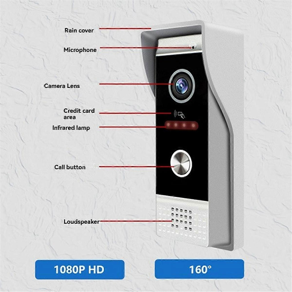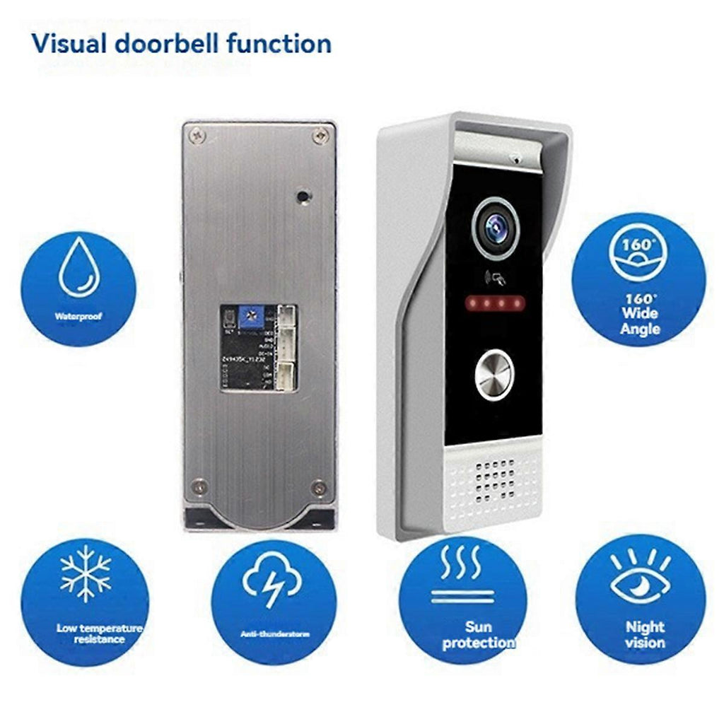 Enhance your home security with our advanced smart video doorbell intercom system. This state-of-the-art system features HD 1080P resolution for clear visuals and a responsive touch display for ease of use Advanced Connectivity: This video doorbell is equipped with TUYA smart technology to seamless integration with your smart home devices. Experience live video calls and monitor your home with ease High-Quality Video & Wide Coverage: Experience superior surveillance with a 7 inch touchscreen display and 1080P doorbell camera. Features include a 160 wide-angle view, night vision, and a weatherproof design to full coverage and clarity Effective Two-Way Audio Communication: Never miss a visitor with all displays and smartphones ringing simultaneously. Communicate directly with the system's two-way audio feature Advanced Motion Detection: The motion sensor notify you when movement is detected Camera: Color imaging Resolution:1080p Connection Type:WireLess Smart home platform:Tuya Colour:As Shown Material:ABS Plug Type:EU Plug,it applies to Indonesia, Germany, France, Spain, Italy and so on. voltage: AC100-240V Due to different batches, there may be differences in product appearance and printed text, which not affect use Package Contents: 1 * Video Doorbell Kit Only the above package content, other products are not included. Note: Light reflection and different displays may cause the color of the item in the picture a little different from the real thing. The measurement allowed error is +/- 1-3cm.