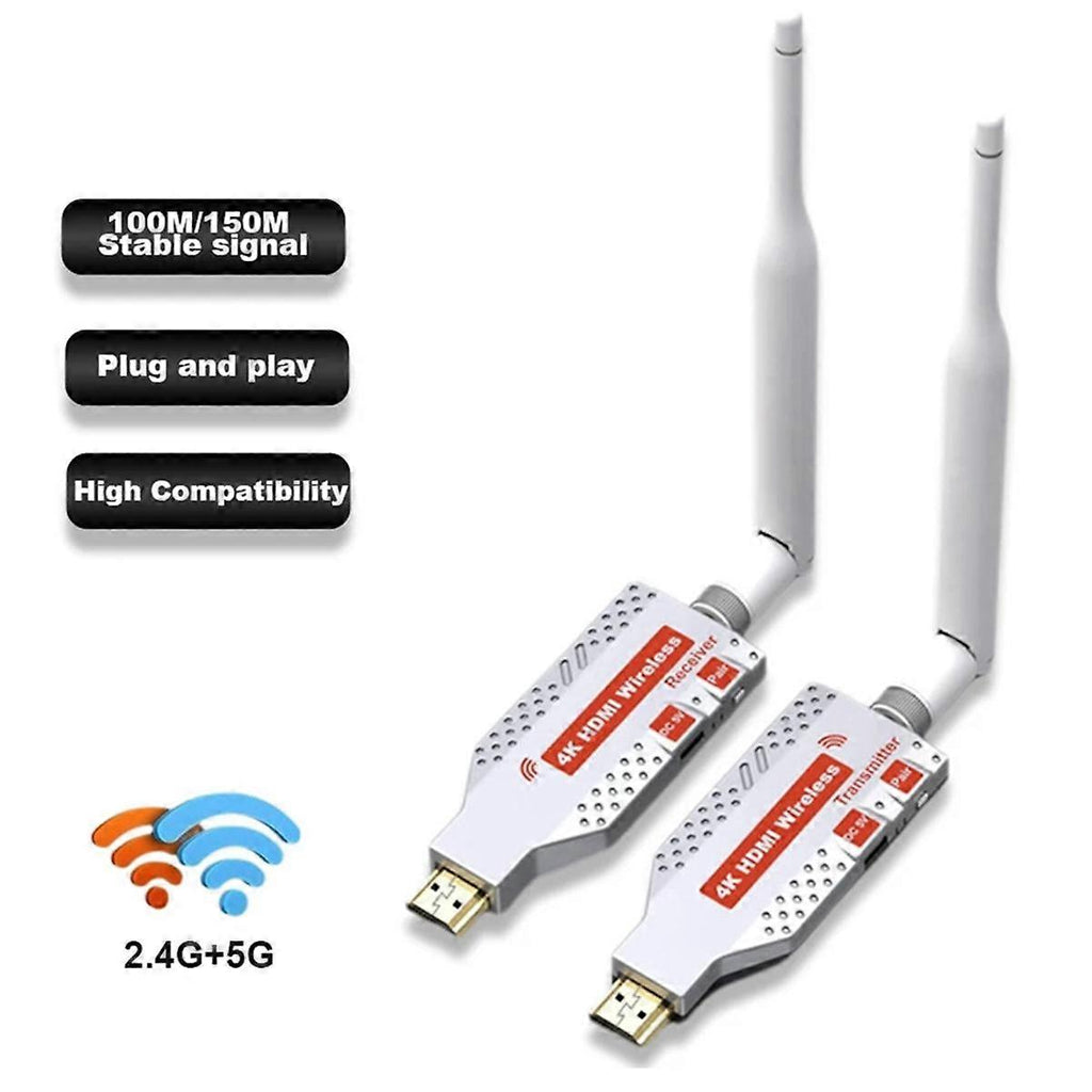 Excellent features: 4K Ultra HD: True 4k resolution, supports up to 4k@30hz High-resolution signal transmission, stable signal, and delicate picture quality; Plug and Play: No settings, no APP, no network, no tedious settings, just connect the corresponding device to start using; 5G Dual Band: 5G frequency signal channel, the signal is stronger and more stable, allowing you to enjoy a high-definition and low-latency audio-visual feast; High compatibility: compatible with devices (laptops, PCs, cameras, game consoles, /5, STBs, TV boxes, projectors, etc.), easily and stably transmit high-definition video and audio signals with low latency Mirroring/Extension Dual Mode: Switch from a small screen to a large screen, the visual experience is clearer, and the screen is extended to display different content; Suitable for a variety of occasions: live broadcasts, games, online courses, corporate meetings, home theaters, etc. Specifications Name: 4K wireless transmitter and receiver Frequency: 5G+2.4G Transmission distance: 150M Power interface: DC 5V HD output: 4K@30Hz (backward compatible) HD input: 4K@30Hz (backward compatible) Wireless standard: 802.11a/b/g/ac Operating temperature: 0~50 Supported protocol: 1.4; HDCP 1.2 Material: Plastic colour: As shown Package Contents: 1 x Wireless Transmitter 1 x Wireless Receiver Only the above package content, other products are not included. Note: Light reflection and different displays may cause the color of the item in the picture a little different from the real thing. The measurement allowed error is +/- 1-3cm.