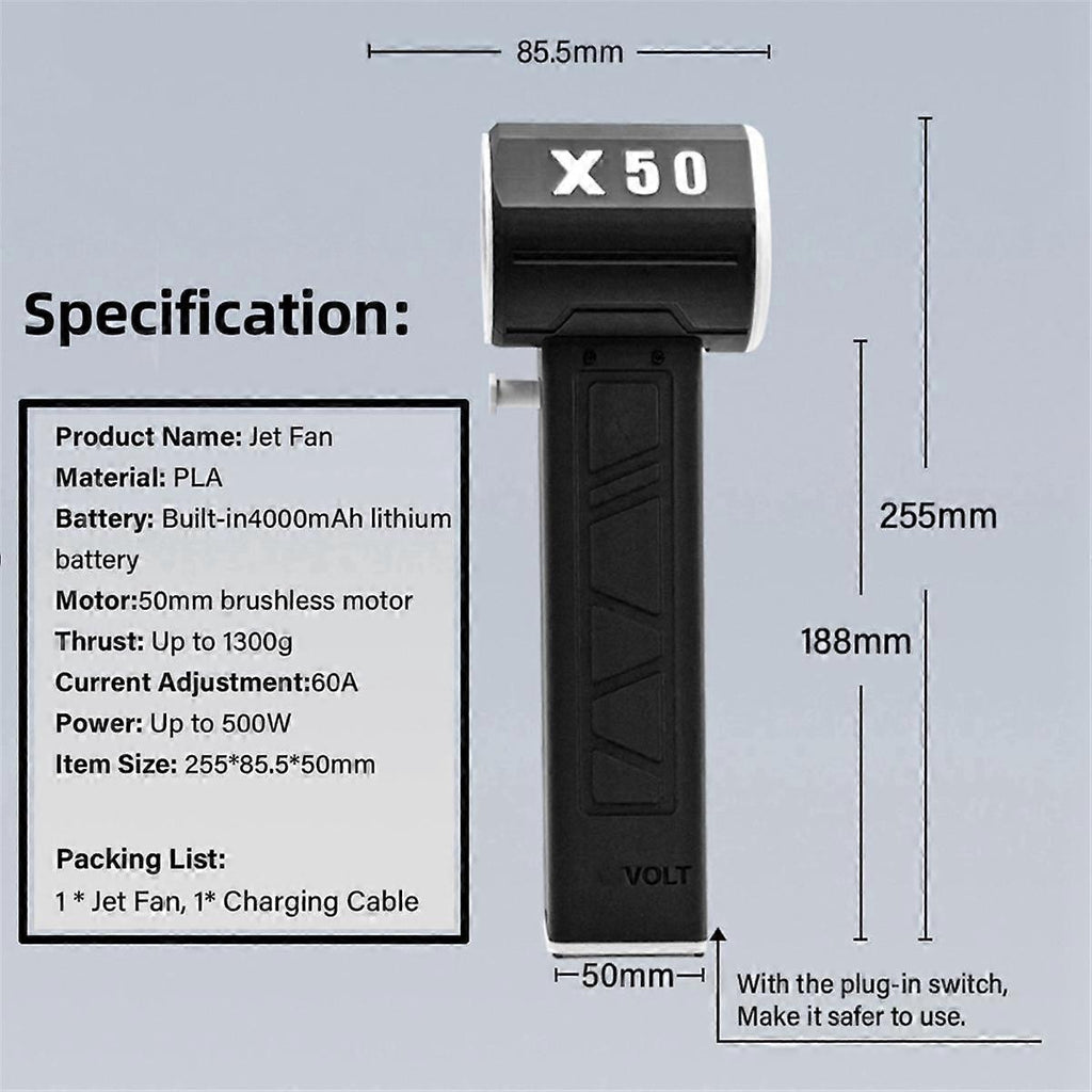 [High Power Motor]: This ducted fan adopts a high-speed 50mm brushless motor and can provide strong blowing power, with a perfect dust removal effect, and the thrust is up to 1300g. It will easily dry an entire vehicle within one charging cycle.