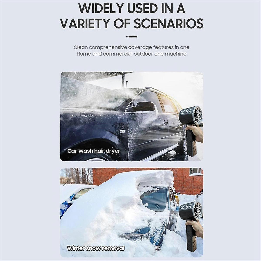 Suitable for: snow cleaning, air cushion inflation, rapid cooling, dust removal, yard cleaning, industrial dust removal, keyboard cleaning, car and motorcycle cleaning, car cleaning water collection, car crack cleaning, floor mat chip cleaning, etc. Domestic, commercial and outdoor use machine.