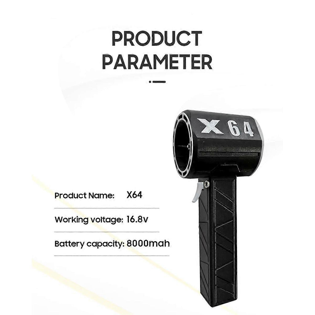New appearance design: reasonable structure, powerful performance. This product uses a high-speed 64mm brushless motor 11-blade fan group, which has good dust removal effect and the thrust can reach 1400 grams.