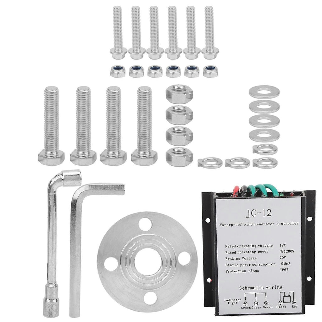 Feature:1. Easy to use and quick to install, and will not take up much of your time, very convenient.2. Accurate injectionmolded blades, combined with optimized design of aerodynamic shape and structure.3. High wind energy utilization rate can increase annual power generation. It is very environmentally friendly.4. Widely used for charging boats, terraces, cabins or mobile homes, etc. It's very practical for you.5. The generator adopts a patented permanent magnet rotor alternator with a special stator design.Specification:Item Type: Small Wind GeneratorRated Power: 1200WStarting Wind Speed: 2.0m/sRated Wind Speed: 12m/sSurvival Wind Speed: 50m/sNumber Of Blades: 3Blade Length: Approx. 600mm / 23.6inBlade Material: Nylon fiberGenerator: 3-phase AC permanent magnet synchronous generatorController System: Electromagnetic/yawAdjustment Method: Automatic adjustment of wind direction angleWorking Temperature: -40-80.Package List:1 x Motor 3 x Wind Blade1 x Controller 1 x Blade Cover1 x Spacer1 x Fastening Tool BagNote:You need to provide your own 48MM diameter mounting rod before use.