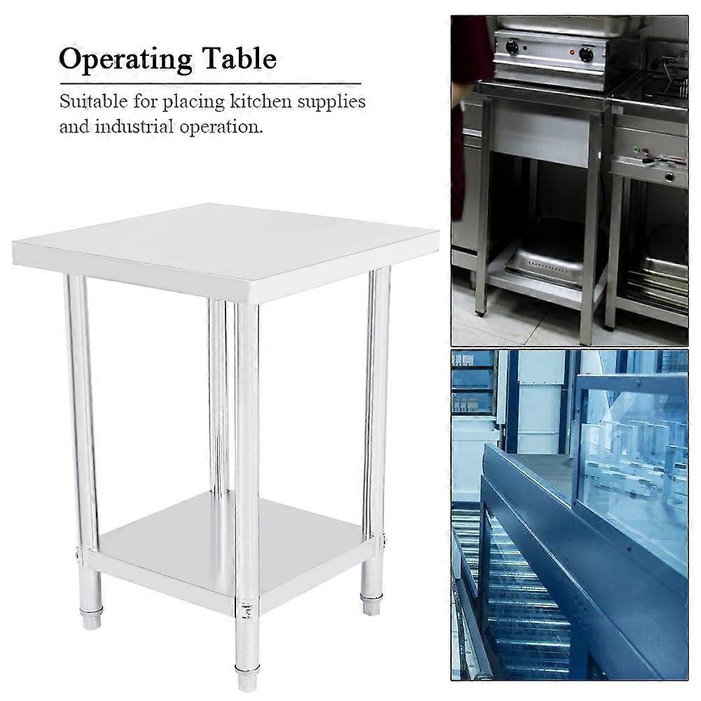 Features:1. Made of high quality stainless steel, durable to use and corrosion resistance.2. It has 0.6mm thick steel plate, can stress heavy and strong stability.3. There are two layers, large storage space for you.4. Easy to tear down, strong and long service life.5. The height of the second layer can adjust freely.6. Suitable for placing kitchen supplies and industrial operation.Specification:Condition: Material: Stainless SteelWeight: Approx. 10800-16100g / 381.0-567.9ozSize: Approx. 61 * 61 * 85cm / 24 * 24 * 33.5in(#1) 91 * 61 * 85cm / 35.8 * 24 * 33.5in(#2) 122 * 61 * 85cm / 48 * 24 * 33.5in(#3)Package List:1 * Operating Table