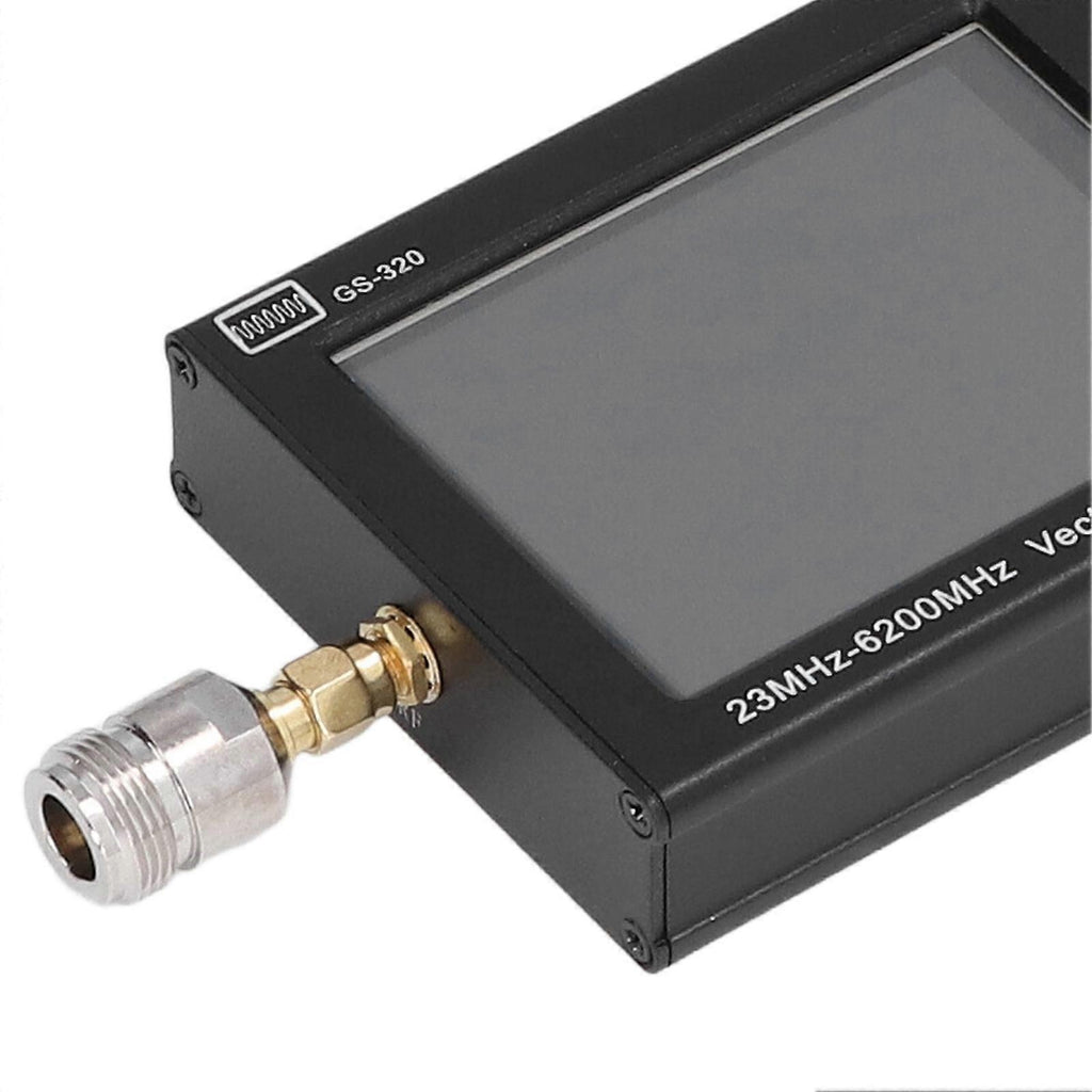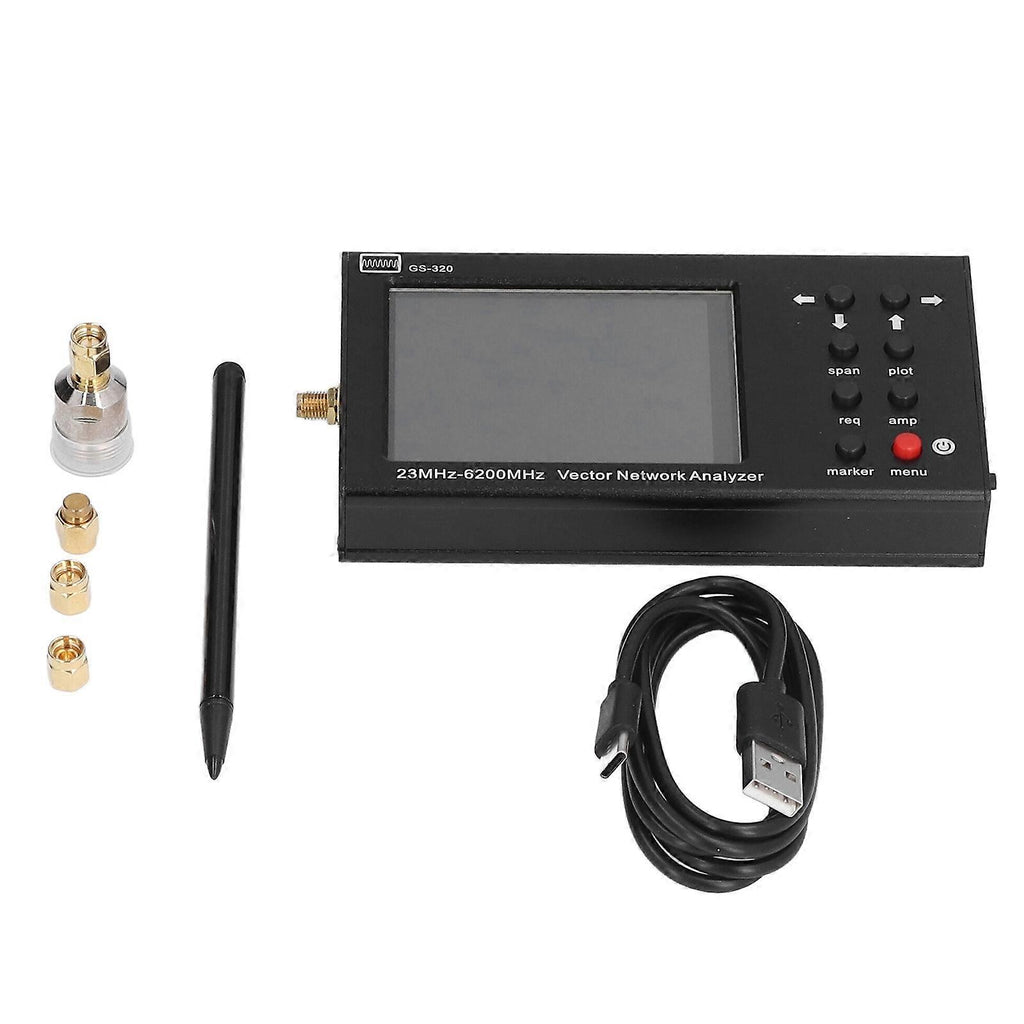 Feature:1. [FOR RADIO EQUIPMENT] Used to measure the matching characteristics of passive and active radio equipment, such as antennas, cables, filters, attenuators, amplifiers, etc.2. [WIDE FREQUENCY RANGE] 23MHz to 6200MHz wide operating frequency range, full frequency range 0.25 dB and 1.5, to achieve high accuracy measurement.3. [3.2IN TOUCH SCREEN] With 3.2in color touch screen, can quickly configure scan parameters and display measurement results, scan speed up to 1000 points/sec.4. [INDEPENDENT MARK] Ability to display up to 4 independent markers on all graphs for accurate evaluation of measured parameters.5. [MULTIPLE DISPLAYS] Can display almost all possible reflection coefficient descriptions, measure cable faults and loss distances.6. [WIDE APPLICATION] The vector network analyzer VNA is very suitable for radio frequency circuit matching and debugging of Bluetooth, WiFi, 2.4G, 5.8G, and GPS.7. [ALUMINUM ALLOY] The shell is made of aluminum alloy and adopts the form of a mobile automatic instrument, which is light in weight and compact in structure.Specification:Item Type: Vector Network AnalyzerMaterial: Aluminum AlloyColor: BlackModel: GS-320Operating Frequency Range: 23-6200MHzFrequency Resolution: 10kHzMaximum Scanning Points: 1000Scanning Speed: 1000 points/secBridge Direction, Uncorrected in the Entire Range: >12dBEffective Directivity (after Full Single Port Calibration): >50dBStanding Wave Ratio at the Input: <2Phase Measurement Accuracy: >1.5 degreesAmplitude Measurement Accuracy: >0.25dBResolution to Determine the Distance to the Fault Point: (C x VF) / 2S mMeasuring Cable Maximum Length: Approx. 3000m / 9842.5ft (VF=1)Maximum DC Input Voltage: 25VDisplay Chart: Smith chart; polar chart; phase of reflection coefficient; amplitude; logarithmic amplitude; VSWR, fault distance; cable lossOperating Temperature Range: 0-+40Screen Diagonal: 3.2 inchesScreen Type: Resistive touchScreen Resolution: 320240Battery Capacity: 4000mAh lithium battery(built in battery)Battery Life: ~4 hoursBattery Charging Time: ~6 hours.Package List:1 x Network Analyzer1 x Type-C Data Cable1 x Touch Screen Pen1 x SOL Calibration Part3 x Adapters1 x English User Manual