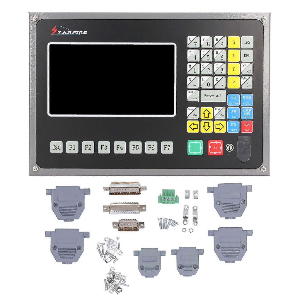 Feature:1. Safe and Reliable: The controller system has high reliability, resist to plasma interference, lightning strike and surge.2. Multi Function: The control system has the function of incision compensation, and automatic memory recovery after power off.3. Good Practicality: Can be epitaxially punched for thick plates, and can be bridged for thin plates, has 24 graphics libraries, which can be expanded and customized, including common basic processing parts.4. Wide Compatibility: Fully compatible for StarCAM typesetting software, compatible with mainstream typesetting software such as for IBE (Germany) and for FASTCAM.5. Wide Application: Suitable for all kinds of flame or plasma, high pressure water jet, laser cutting machine, widely used in metal processing, advertising, stone and other industries.Specification:Item Type: CNC Plasma Cutting Machine SystemMaterial: Aluminum AlloyInput Voltage: DC24VCurrent: 2ADisplay Screen: 7in 16 million color highlight LCD screenMemory: 64M SDRAMUser Storage Space: 4GMain Frequency: 400MHZUSB Type: USB1.1USB Quantity: Front interface, 1 piece, support U disk above 16GBKeyboard: PCB film keyboardChassis: Fully enclosed structure, anti electromagnetic radiation and static electricity.Package List:1 xCNC Plasma Cutting Machine System3 x Connector6 x Plug Shell1 x Terminal18 x Screw6 x Nut12 x AccessoriesNote:Match the appropriate model size before use.