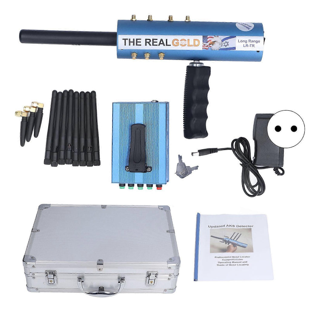 Feature:1. Metal Detector: The detector has high sensitivity and stability, can identify different types of metals, and accurately determine the location of objects.2. Multi Purpose: You can use metal detectors to explore more places to find treasures, find gold, silver, copper and gems, and improve the efficiency of treasure hunters.3. Microelectronic Processor: The microelectronic processor controls the chip unit calibration and instrument self checking system, which can scan easily and quickly.4. Remote Search: A specific type of metal can be identified through a frequency regulator; it has a remote search system and an accurate position detection system.5. Wide Detection Range: The detection range can reach 10000m, and the underground detection depth can reach 30m. Widely used in security inspections, archaeological treasure hunting, etc.Specification:Item Type: Metal DetectorMaterial: Aluminum Alloy + ABSBattery: Transmitter 12V 1600 mAh Rechargeable Lithium Battery (Built in Battery)Receiver 12V 1000mAh Rechargeable Lithium Battery (Built in Battery)Uses: It is widely used in security inspections, archaeological treasure hunting, and mineral prospecting.Basic Parameters:1. Search Range: Approx. 10000M / 32808ft2. Detection Depth: Approx. 30M / 98ft3. Transmission Frequency: 5.6-6KHz4. Signal Frequency: 360-440Hz.Package List:1 x Transmitter1 x Receiver8 x Signal Bar (Long)3 x Signal Bar (Short)1 x Power Adapter2 x Key1 x Suitcase1 x ManualNote:If you feel that there is a certain deviation in the measured position, you can determine it from another point of view. If the target is within 10 meters, you will slowly and steadily follow a prescribed route. When you pass the target and you are directly above it, the antenna of the instrument will shake on both sides. The position measured at this time is very accurate. (For specific operation instructions, please refer to the manual.) The product has its own degaussing function (as long as the probe of the receiver is close to the ferrous metal, the alarm will be three times to degauss)