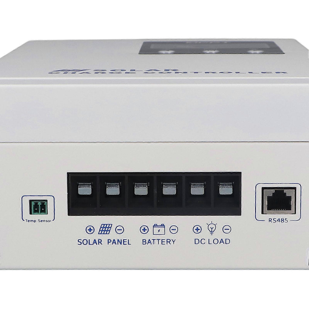 Feature:1. BLUETOOTH CONTROL: The solar controller comes with Bluetooth remote control so you can monitor and adjust the solar controller to achieve maximum charging efficiency.2. MULTIPLE OVERLOAD MODES: Solar controller with normally on, off mode, light control mode, double time mode, light control and time control mode.3. FULL PROTECTIONS: Solar controller with high voltage protection, low voltage, overload, overheat, reverse connection, short circuit, overcurrent and damage protection, etc.4. LCD DISPLAY: The LCD display page is clear and easy to operate, and the aluminum radiator and cooling fan ensure that the machine can work long hours with high efficiency.5. WIDE APPLICATION: The solar controller is suitable for solar power generation system, solar street light, solar charger solar light box, RV, etc.Specification:Item Type: MPPT Charge Controller Material: Alloy steelRated Voltage: 12, 24, 36, 48VRated Current: 80A, 100AMaximum PV Voltage: 150VTemperature Probe Communication Interface: RS485,RJ45Maximum PV Input Power: 1300W (12V), 2600W (24V), 3900W (36V) 5200W (48V).Package List:1 x MPPT Charge Controller 1 x Connecting Cable1 x Bluetooth Connector1 x Temperature Probe2 x Instruction