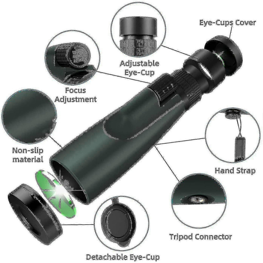10-30x 50mm HD monocular Anruzon monocular is a high-performance monocular telescope with 10-30x adjustable magnification that allows you to get closer to the distance. In addition, a 50 mm objective lens (eyepiece: 22 mm) of this monocular has a 45% larger incident light area than a 42 mm objective lens and offers a larger field of view. An ideal monocular for camping, bird watching, concerts, sporting events, sightseeing, landscapes, etc.Phone holder and tripod The latest Anruzon 2021 phone holder is included and is suitable for almost all smartphones such as iPhones, Samsung, Sony, LG, HTC, etc. Also comes with a rotatable metal tripod that can be used to record every amazing moment in all directions can. With the monocular with smartphone, you can now share the beauty you have captured with your families and friends.Image with high contrast and high resolution The BAK-4 prism and the FMC lens (Fully Multi-Coated) of our zoom monocular guarantee a light transmission of up to 99.9%, resulting in a bright, sharp and brightly colored image achieved. And by reducing glare and double vision, you will not get dizzy and you will have a comfortable view for a long time.Humanized design This Starscope monocular telescope measures 20 x 8 x 6.5 cm and weighs only 248 g. It is very comfortable to hold and focus with one hand. An adjustable eyecup can be rotated up and down for easy viewing with or without glasses. If you hold the monocular with your hand, the non-slip rubber armor and the attached hand strap protect the monocular from falling.Waterproof, dustproof, shockproof Our monocular telescope is waterproof with filler nitrogen. But to extend the lifespan, never rinse it with water or submerge it in water. In addition, two supplied O-ring lens caps keep the lenses away from moisture and dust. Together with shockproof rubber armor, this monocular telescope can accompany you on your outdoor adventure even in bad weather.