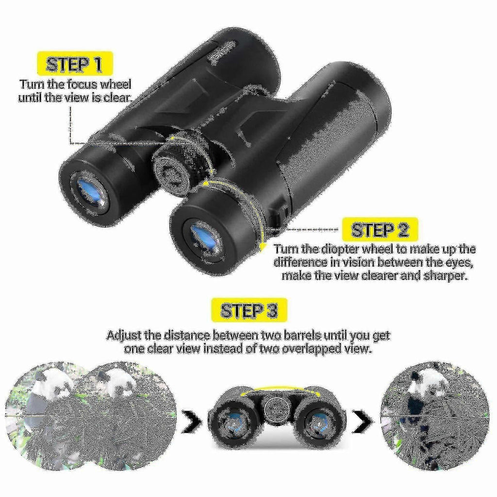 Description [Powerful 10x42 Binoculars] With powerful 10X magnification, 42mm large lens, 1000m far field of view, give you better viewing pleasure, help you see distant landscapes and animals easily.[Professional HD views] Adopt BAK4 prisms and fully multi-coated lenses, improve light transmission, ensure HD views, provide brighter and clearer images.[Lightweight and durable] The binoculars are light and sturdy, adopt high-quality rubber armor, non-slip, shock-absorbing, dust-proof and waterproof in everyday life. Hold comfortable, simple to use, precise focus.[Multipurpose Binoculars] The BEBANG 10X 42 binoculars are ideal for outdoor activities, such as bird watching, hunting, travel, hiking, camping, rock climbing, stargazing, concerts, sports.