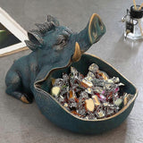 Creative Wild Boar Key Storage Bowl Resin Candy Dish Art Animal With Open Mouth