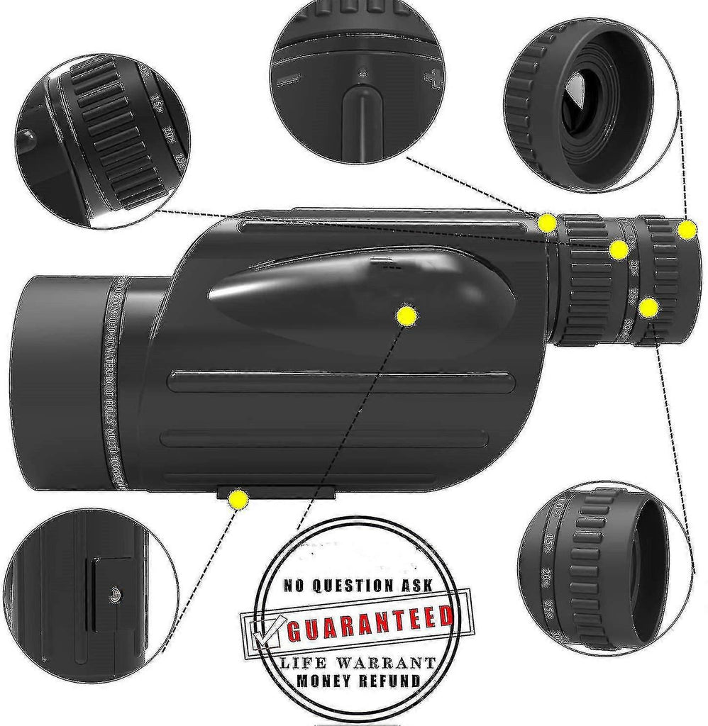 Portable Zoom Monocular - Monocular has a powerful zoom magnification range that is adjustable 10 to 30 times if you need to see a larger view and need to handle it stably, zoom in to a high magnification if you are a little further away have to see and also want a certain picture.Suitable for any occasion: The variable 10-30x magnification and dynamic lens focusing system makes it easy to zoom in on the target, perfect for hunting, camping, target shooting, archery, bird watching, wildlife viewing, landscape and even astronomy.Advanced Configuration - With the ED-Falss (extra low dispersion glass), BAK-4 crystal prism and FMC (full multilayer) 50mm objective lens, monocular offers less chromatic aberration, brighter and clearer image. The transfer of highlights achieves up to 99.8% light reflections and enables a clear picture like the Porro system.