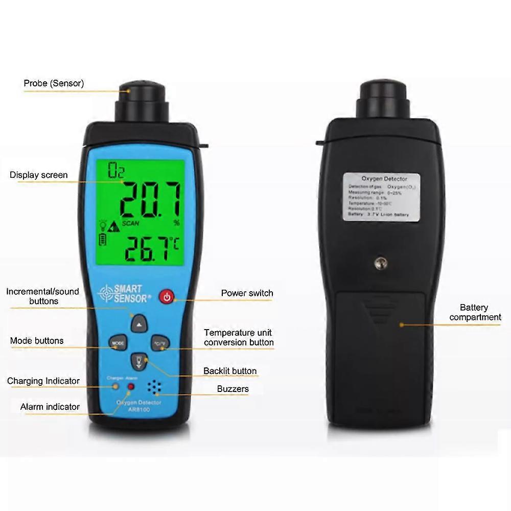 Digital Smart Oxygen Meter O2 Detector Sound Light Alarm Air Quality Gas Monit