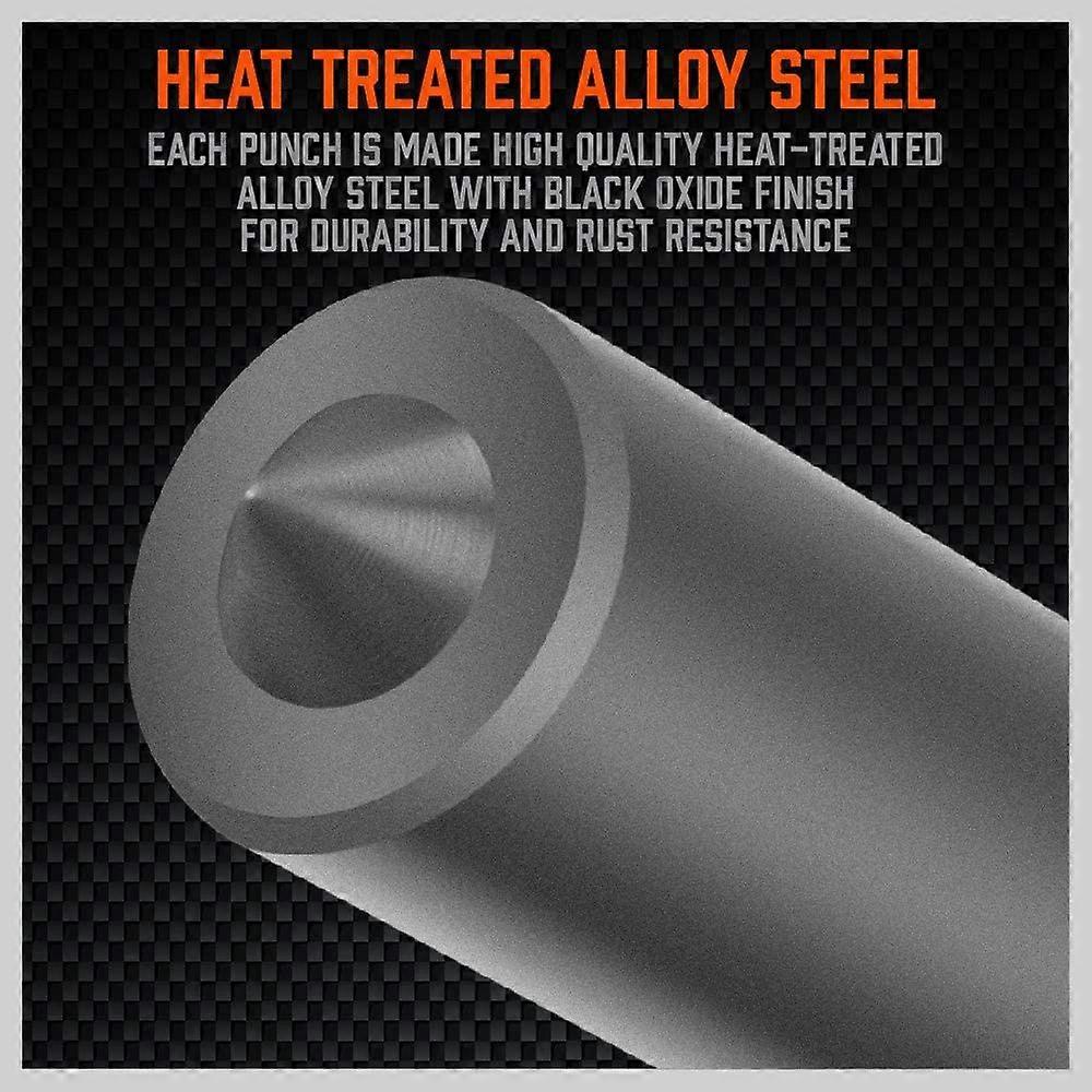 Each punch is a high quality heat treated alloy steel with durability and rust resistance of a black oxide film. Takes the guesswork out of ferring threaded, drilled or reamed machining, drilling operations Drilling punch set includes easy-to-see index stand to keep tools stacked and ready to pull Precision indexing punch for tool builders and mechanics Wide set of fer punches from 3/32 inch to 1/2 inch by 1/64 inch; includes 17/32 inch fer punch Colour: Orange + Black Material: Alloy Steel Package Contents: 28 x punches 1 x punch storage box Only the above package content, other products are not included. Note: Light and different displays may cause the color of the item in the picture a little different from the real thing. The measurement allowed error is +/- 1-3cm.