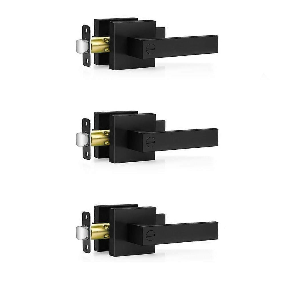 3 Pack Matte Black Door Handles, Keyless Interior Door Knobs, Privacy Door Lever Locksets for Bedroom Bathroom
