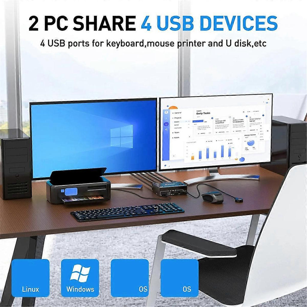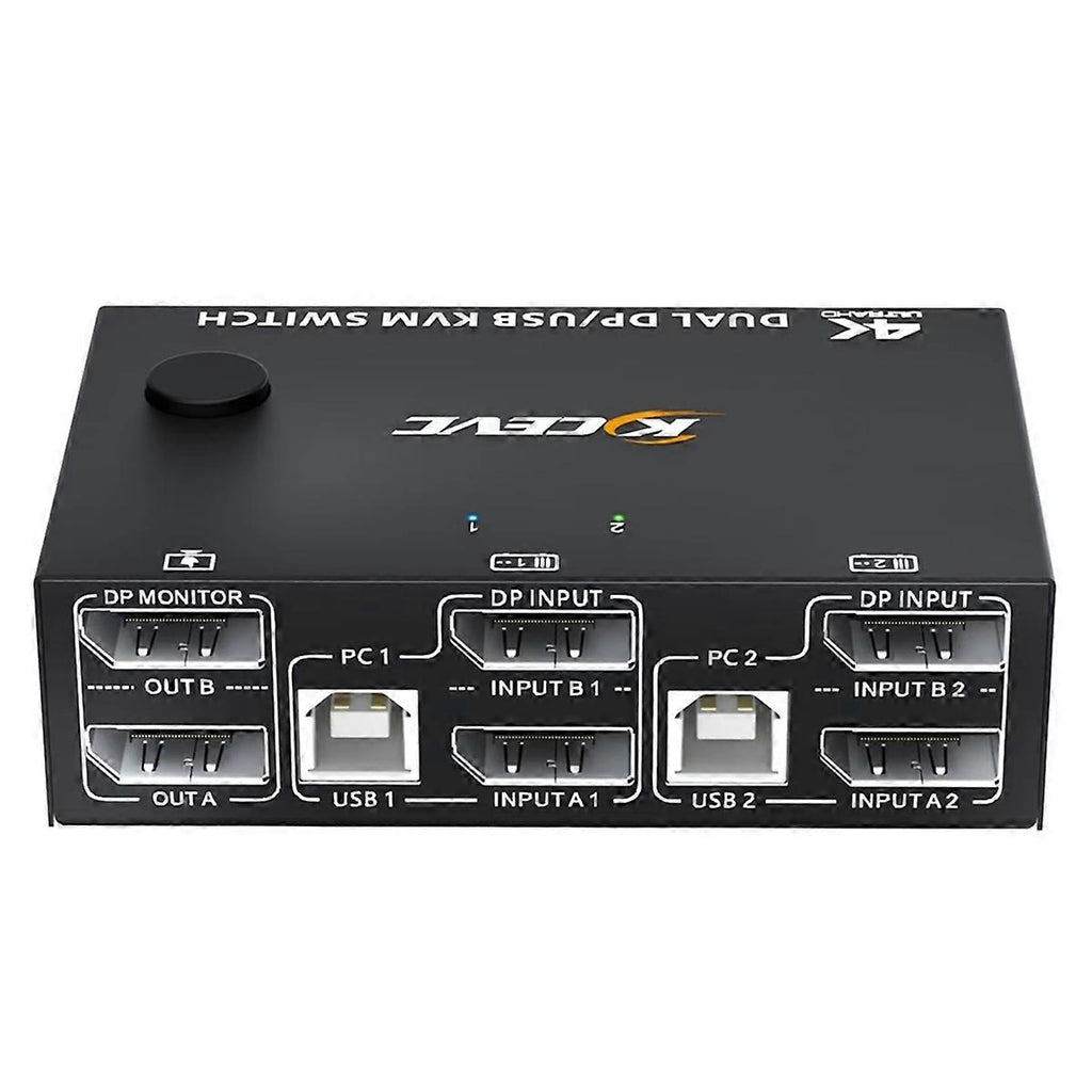 [Displayport Dual Monitor KVM switch] This Dual Monitor KVM switch 2 computers 2 monitors help you to control 2 desktops or laptops by only one set of wired or wireless keyboard mouse,share 4 USB devices and 2 monitors(extended mode or copy mode). [Ultra HD 8K@30Hz/4K@144Hz] DP1.4 KVM Switch Dual Monitor support resolution 8K@30Hz/4K@144Hz and backward compatible.KVM switch 2 computers 2 monitors aslo support input terminal to connect 2 computers with different resolutions, e.g. one is 4K@60Hz, the other is 4K@30Hz, 1440P@60Hz or lower resolution. : Final resolution is also subject to graphic cards, monitors, cables and adapters. [Displayport1.4 KVM Switches with 4 USB Ports] Dual monitor DP USB switch with 4 USB ports,allows 2 computers share 2 monitors and 4 USB devices,such as Keyboard, mouse and other USB devices.Please use the USB cable included in the package to connect the USB port of the PC1/PC2 input to the USB port of the computer. [Easy to Use & 2 Switching Methdos] Dual monitor KVM switch driver-free for most computer operating systems and plug and play. Pressing the button on the panel or use the wired remote controller(included in the package)to switch the computers.Two-color indicator light show which computer switch to. [Please Note] Dual monitors KVM switch require each computer to have 2*DP output ports and supports extended display.Adapters be needed if your PC does not have dual DP outputs, -compatible to DP,MINI DP to DP or USB C to DP adapters are preferred;This DisplayPort KVM switch does not support EDID emulation,so the desktop locations may change upon switching and boot-up. Colour:Black Material:ABS Package Contents: 1 * KVM switch 2 * USB cable 1 * wired control cable Only the above package content, other products are not included. Note: Light reflection and different displays may cause the color of the item in the picture a little different from the real thing. The measurement allowed error is +/- 1-3cm.