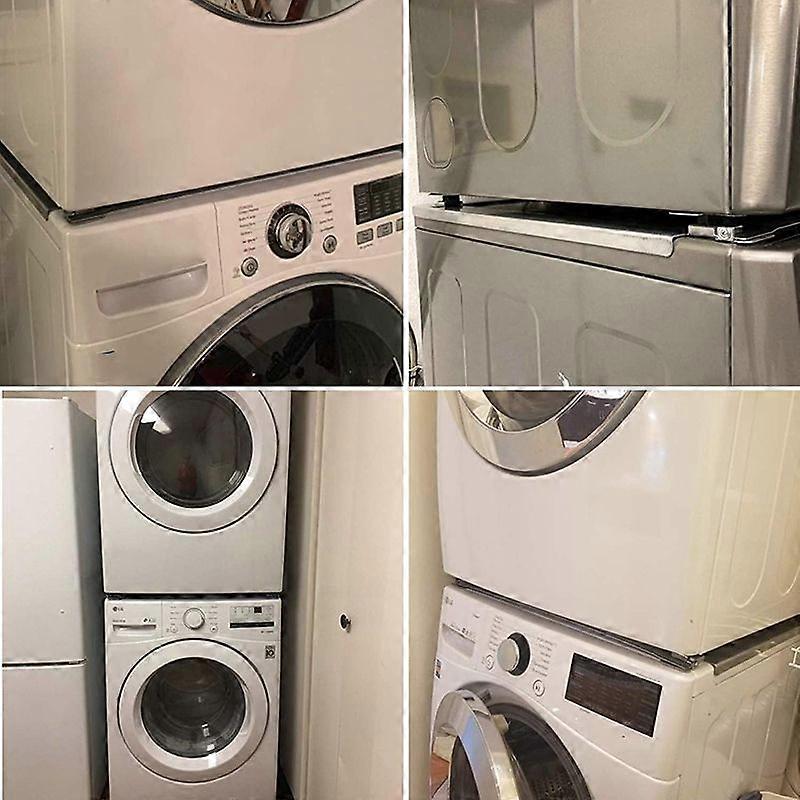 Fit for most 27 inch washers and dryers. Safely secure and stack the dryer on top of the washer in order to minimize floor space in smaller laundry areas. Material: High quality Steel , Chrome color, compact strong design. To be used with front control laundry units. Colour: silver Material: metal Size: 27 inch Package Contents: 1 * Laundry stacking kit Only the above package content, other products are not included. Note: Light and different displays may cause the color of the item in the picture a little different from the real thing. The measurement allowed error is +/- 1-3cm.