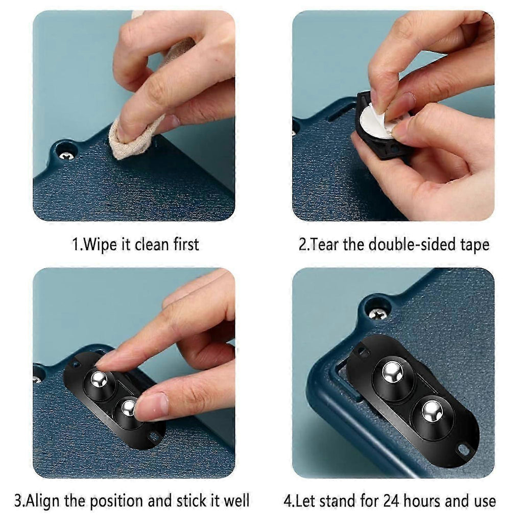 Universal Ball PulleyThis transport caster is solid cast, rotates 360 degrees smoothly and has a dough pulley that allows you to slide in any direction to make your work easier. It has high shock absorption performance. You will enjoy a sweet and peaceful life. Large load capacityThe maximum load capacity of small furniture casters is 30 kg. The roller can reduce the friction between the object and the ground, and the roller is flexible, fast, stable and energy-saving. If you want to be stronger, the small roller has two mounting holes for screw fixing, so you can easily connect them to your device. High-quality materialsOur universal ball pulley is made of high-quality stainless steel + plastic materials, which are not easy to age and rust. The contact surface adopts thickened plates to increase the contact area and improve the bearing capacity. It is thick and durable, has a long service life, and can be used for a long time. Easy to install It can be installed without any tools and there is no damage to objects. We are equipped with double-sided adhesive tape, simple and convenient to install. First, you just need to wipe down the area where the product will be installed. Line up and glue the directions of the four pulleys. Noticed: It is recommended to wait 24 hours, the effect will be better when used. Wide range of applications Furniture casters are small and suitable for all walks of life. Small rollers used for furniture help in moving and transporting, and can be used for daily use of furniture, machines, display cases, trolleys, shelves, flower racks, etc. They can also be used in industrial drive systems, transmission systems, electric power systems, processing systems.