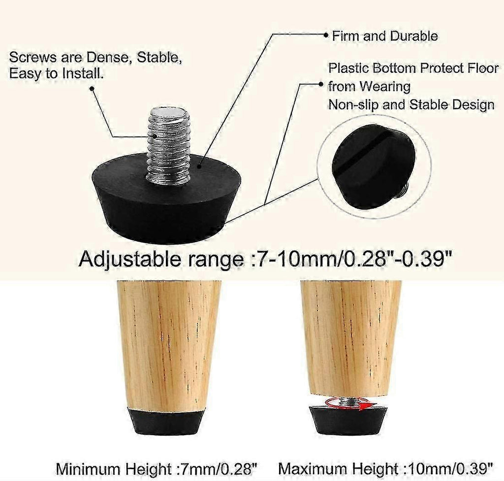 It can protect your floor very well, give you a better lifestyle APPLY SCENE - The adjustable leveling foot is for office or home furniture, even industrial machinery with threaded sockets. Such as mechanical equipment, fitness equipment, stands, TV stands, table, cabinets, shelves, beach chairs, desk, etc. KEEP BALANCE - If the floor is rough, you can install it at the bottom of your product to keep it balanced. It can effectively protect the product during movement, prevent scratches and reduce loud noises EASY INSTALLATION - Made of high quality plastic and metal, it is durable and practical, easy to install and provides better stability for users. furniture and machine feet. Choose the right one for your product then screw it as you want PREVENT MOISTURE and NON-SLIP - Thick plastic bottom and adjustable wire height keep product feet away from wet ground, effectively protect feet and floor to keep it tidy and beautiful, and also prevent slipping to make it stable