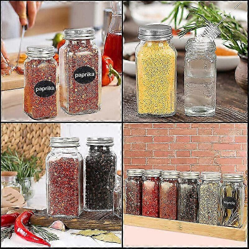 We equip you with shaker lids, blank label, shaker insert tops, airtight cap, chalkboard pen, collapsible funnel makes adding spices messy! High-quality materials: The spice container is made of high-quality glass materials andis free of BPA and lead.It can be used with confidence.We are equipped with everything you need for filling and storage, very convenient to use. Good Sealing, Easy to Clean: The rustproof lids and lids are airtight, which means yourHerbs can stay longer. These spice containers can easily be used for different purposes, and these glass spice bottles are also very easy to clean.Wash, dry and disinfect jars with a lid as you wish! Designed with care: The flip caps on these bottles are easy to open and close.The wide opening of the square spice jar makes filling and dosing easier.Ideal for storing spices, herbs, pepper, salt for your kitchen. Multifunctional use: In addition to storing spices, herbs and powders, these glass bottles are perfect for organizing craft supplies at home orin the office.Such as party favors, craft or office supplies, decorative items or homemade sweets.Each set is packaged in a beautiful box, perfect for gifting.