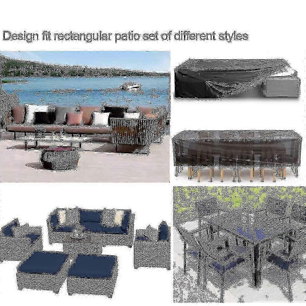 Size: Length * Width* heightThere are several sizes we offered. Please kindly check your furniture dimensions for proper fit. Type: Furniture Set Cover Shape: Rectangle Material: Water Resistance PVC Coating Make your furniture more lasting. Protect patio furniture from dust, dirt, sun, rain and mild snow. Convenient to protect both chair and table.Perfect for home, outdoors, yard, square and more use. Protect your furniture, BBQ grills, motorcycles, battery carts, bicycles etc from dust, sun, and rain, keeping them clean and new Made of thick 210 Oxford, which is durable, water resistant, wind proof resistant and dust-proof. Bonus bag made of the same material Double stitching (Sewing) and durable material make it much more durable than those that tear easily Built-ins tighten rope and adjustable at bottom is good multi-protection in bad weather like the rainy, windy, snowy weather Drawstrings pull cord with weatherproof eyelets and cord lock to hold cover in place. Made of premium material, durable and practical for long term use. Package Included:1 x Furniture Set CoverNote:- Please allow 1-3CM differs due to manual measurement.