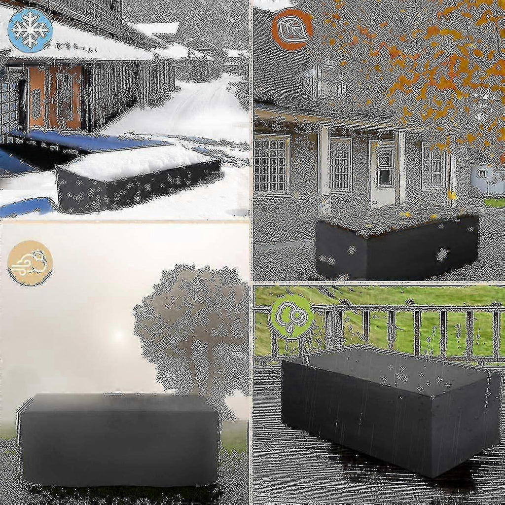 Size: Length * Width* heightThere are several sizes we offered. Please kindly check your furniture dimensions for proper fit. Type: Furniture Set Cover Shape: Rectangle Material: Water Resistance PVC Coating Make your furniture more lasting. Protect patio furniture from dust, dirt, sun, rain and mild snow. Convenient to protect both chair and table.Perfect for home, outdoors, yard, square and more use. Protect your furniture, BBQ grills, motorcycles, battery carts, bicycles etc from dust, sun, and rain, keeping them clean and new Made of thick 210 Oxford, which is durable, water resistant, wind proof resistant and dust-proof. Bonus bag made of the same material Double stitching (Sewing) and durable material make it much more durable than those that tear easily Built-ins tighten rope and adjustable at bottom is good multi-protection in bad weather like the rainy, windy, snowy weather Drawstrings pull cord with weatherproof eyelets and cord lock to hold cover in place. Made of premium material, durable and practical for long term use. Package Included:1 x Furniture Set CoverNote:- Please allow 1-3CM differs due to manual measurement.