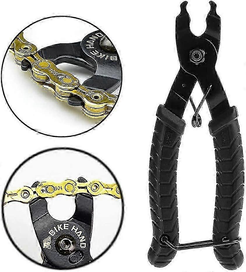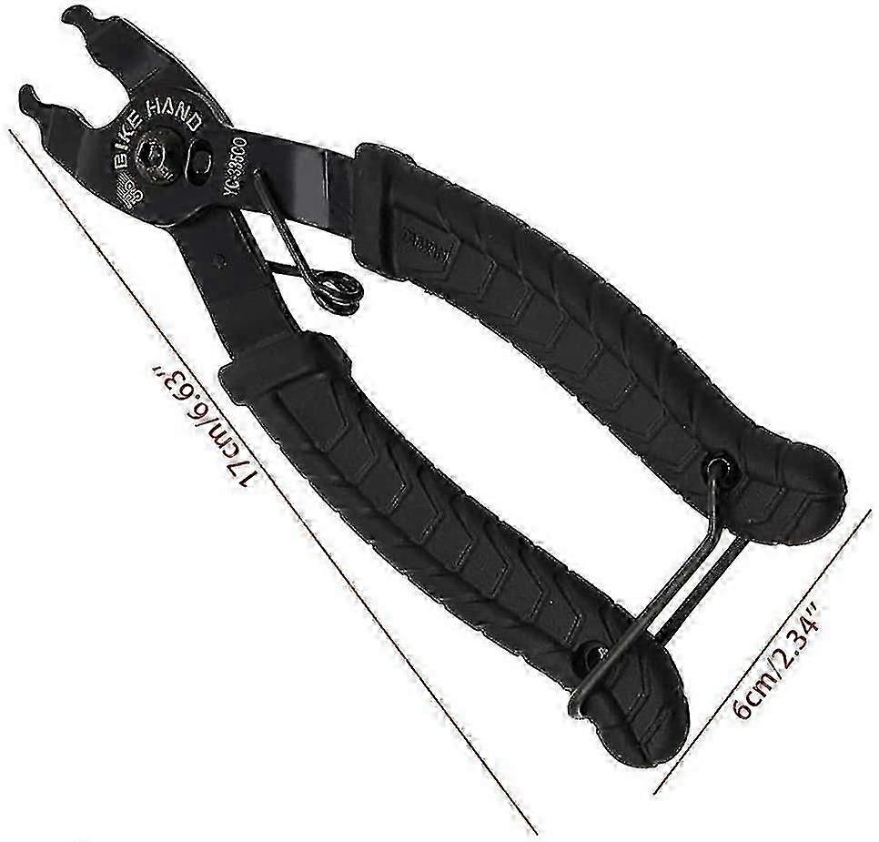 High quality materials; : Made of high quality stainless steel, very durable and strong.Non-slip handle: made of rubber, with a rubber cover coated spring, very comfortable and non-slip, saving energy.Two-in-one function: very suitable for the opening and at the jumper closure, suitable for 7, 8, 9, 10 and 11-speed chains.Small and portable: The grip handle with buckle at the bottom, small and portable design, can to be transported to anytime, anywhere.Very easy to use: chain can easily remove and add the chain, and the open link can be removed; and reconnected in a few minutes. Sometimes the metal can be oxidized. If you receive rusty or defective products, please contact us immediately, we are willing to help. refund you or replace.