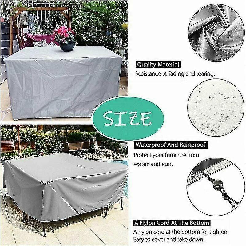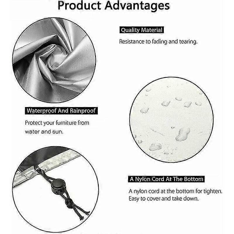 These covers protect your garden furniture from rain, snow and sun. A plus of being tear-resistant, this material is resistant to UV radiation and has a water-repellent PVC coating. Waterproof, tear-resistant, UV-resistant, heat-resistant, washable, garden furniture covers are very easy to clean, pour and dry in the sun. The included backpack is easy to store. The garden furniture cover is very easy to clean. dirt on the protective cover can be easily wiped off, rinsed with water and dried in the sun. Our garden table protective cover is suitable for most indoor or outdoor furniture. such as outdoor sofa covers, round/square/oval tables, chairs, loveseats, etc. The smooth surface is easy to clean, just rinse the cover with water and dry it with a cloth.