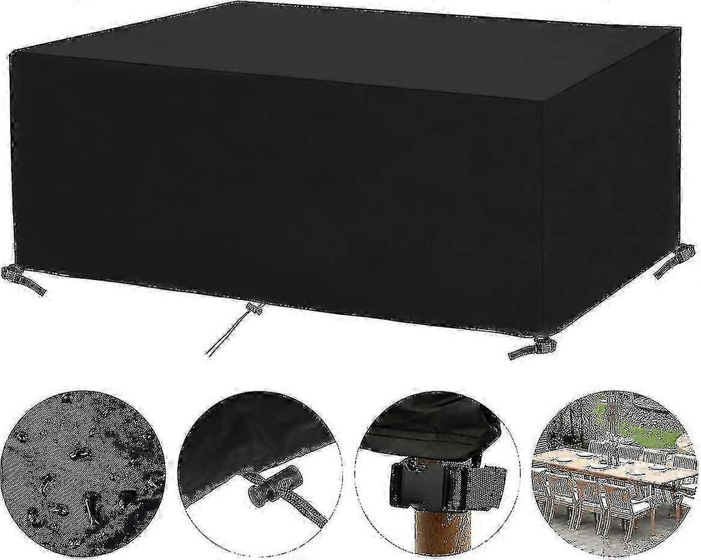 Made of hard-wearing, non-fading Oxford cloth (120 gr / sqm) with a thickened coating, waterproof (up to 2000 PA) and permanent tear. UV resistant design offers exceptional durability against sunlight. The protective cover protects your chair and table in all seasons. 200 x 160 x 70cm (L x W x H). Weight: 920g. The protective cover is suitable for covering tables, chairs, rectangular patio tables, rattan furniture or oval-shaped garden furniture. Please check the dimensions of your garden furniture before purchasing. There are two adjustable straps and 4 buckles on the garden furniture cover, which ensure a secure hold. Garden furniture cover is not blown away by the wind. Waterproof, tear-proof, UV-resistant, heat-resistant and washable, the garden furniture cover is extremely easy to clean, to water with the smart and to dry in the sun. The supplied pack sack for easy storage. Product Garden furniture cover, breathable cover for table and chairs, waterproof Oxford fabric seating group cover tarpaulin * Optimal protective cover for garden furniture - in summer as in winter. This garden furniture cover gives you a long service life for your furniture. * PU coating and silver coating make the table cover more waterproof and UV resistant. * Easy to wash, hose down with water and dry in the sun. * Suitable for most garden furniture or benches up to 200x160x70cm. * The furniture cover can be easily folded into a small piece and collected in the storage bag when not in use. Garden furniture cover * Outdoor furniture cover has been upgraded to high quality, high density oxford fabric which is thicker and more durable. * In summer, the tarpaulin garden furniture protects the furniture from UV radiation and, of course, from rain and moisture. * In winter, the garden furniture cover protects your furniture from moisture, dirt, rain, ice and other environmental influences. -High quality oxford fabric -Tear Resistant - UV-resistant -Waterproof Wind resistance -Dustproof -Heat resistant and washable Technical data: Material: oxford fabric Dimension: 200 x 160 x 70cm (LxWxH) Weight: 920g Color: Black Scope of delivery: 1 x garden furniture cover 1 x storage bag