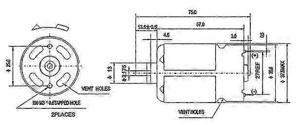 Length: approx. 57mm Diameter: approx. 37mm Shaft length: approx. 12mm Shaft diameter: approx. 3mm Gear diameter: approx. 8mm or 8.8mm or 9.6mm or 9.9mm or 11.5mm Gear thickness: approx. 5-7mm Motor installation hole distance: approx. 25mm Motor gear: 9teeth/11teeth/12teeth/14teeth/15teeth/17teeth Motor gear module: 1.0 mold Optional voltage: 7.2V/9.6V/10.8V/12V/14.4V/16.8V/18V/21V/25V _x000D_
